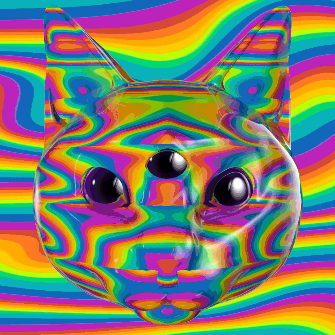 Let the mesmerizing gaze of this wise being reveal the hidden knowledge deep within. "Trippy Kitty" is a prismatic visual meditation designed to engage and unlock the mysteries of the universe. As the physical realm melts away, the cat spirit comes out to play.