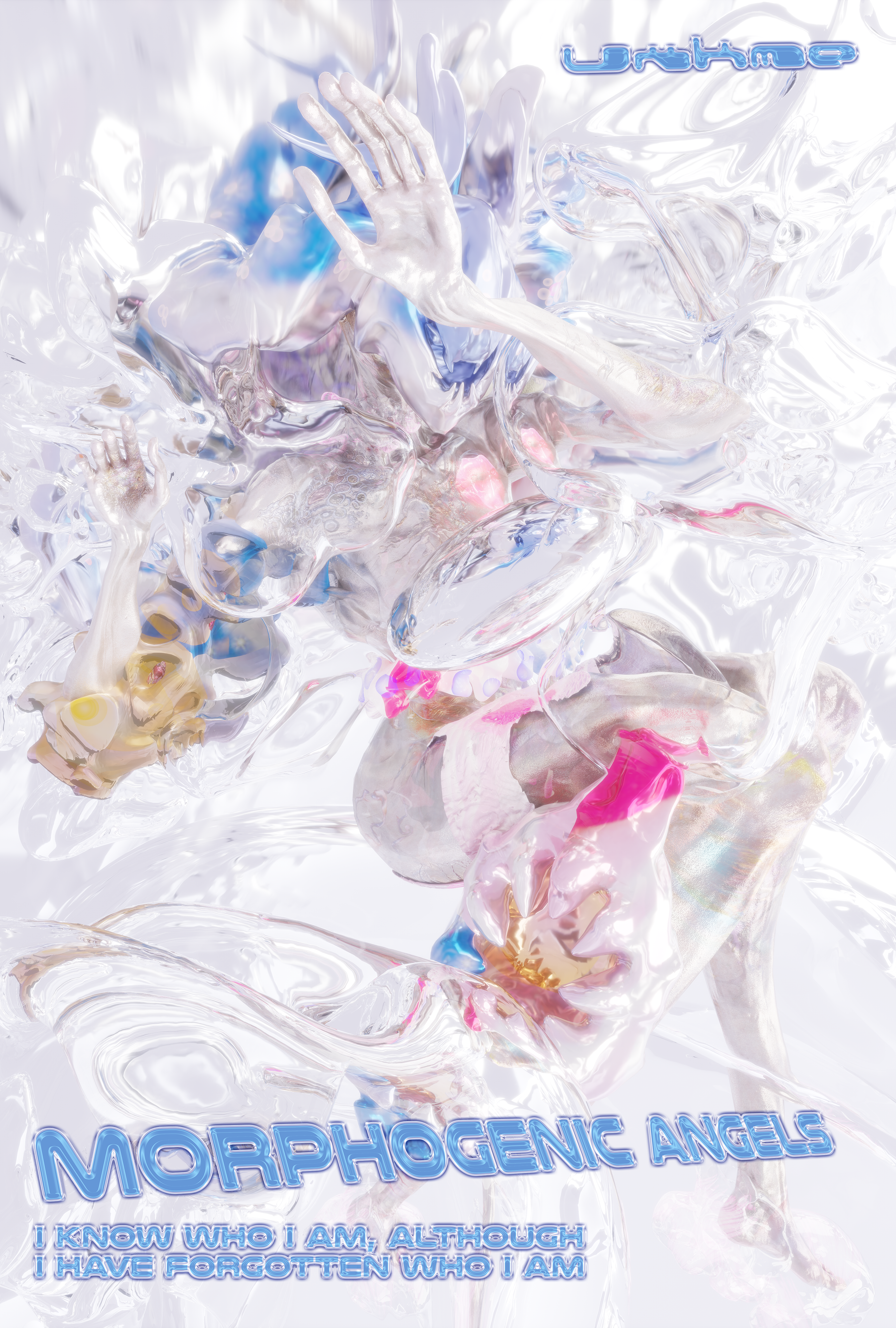 Uxkme (which means “old woman” in Téenek) is part of Omoiyari, a collaborative artwork made by the artist collective Keiken and Gabriel Massan. First displayed around the busy streets of Soho in Central London at The Photographers Gallery (2022), the posters in this series encouraged passers-by to explore a speculative world by encountering some of its inhabitants.<br><br>Omoiyari translates as compassion in Japanese. Each poster in the series features a slogan in the style of an advert. When positioned in busy, retail-driven areas, these expressions of love, tenderness, and infinite possibility inspire us to challenge and expand the pre-existing structures and limitations of our reality. They subvert the idea that adverts sell desires, and instead examine the depths and complexities of being a spirit within a body.<br><br>In this work, Uxkme—a fragile avatar trapped in the thick gel of time—struggles to remember themselves while maintaining the muscle memory of their spirit. To practice compassion, one must be a student of the invisible.