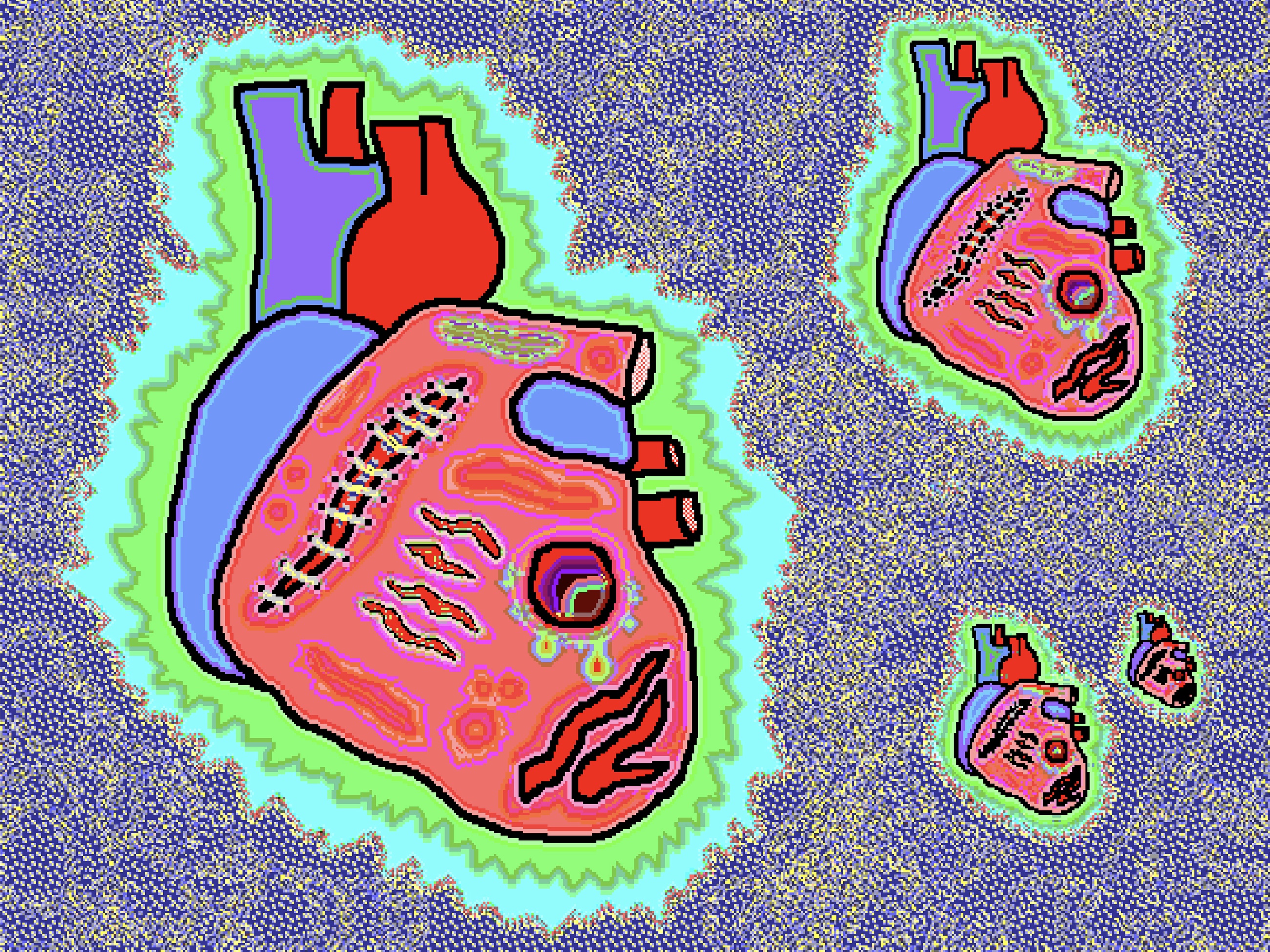 Created using vintage KidPix Studio software from 1993 – the artist’s first digital toolset.