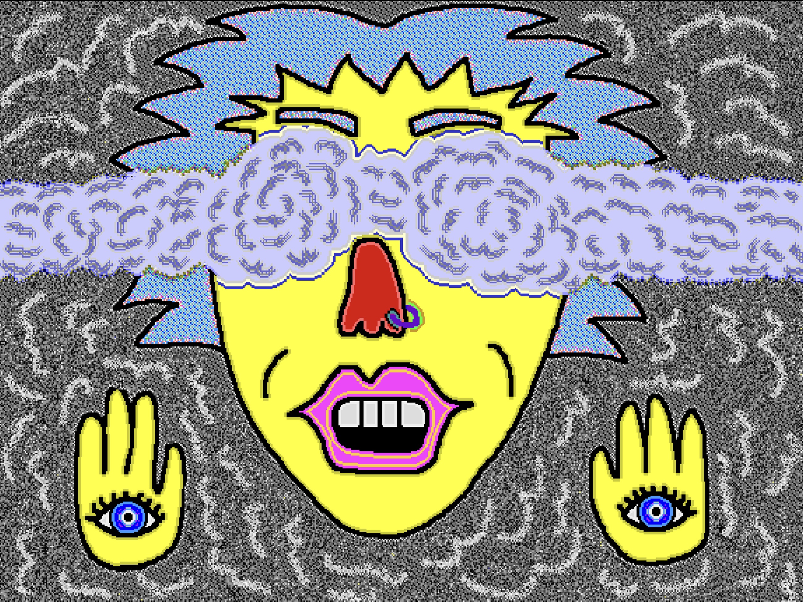 Created using vintage KidPix Studio software from 1993 – the artist’s first digital toolset.