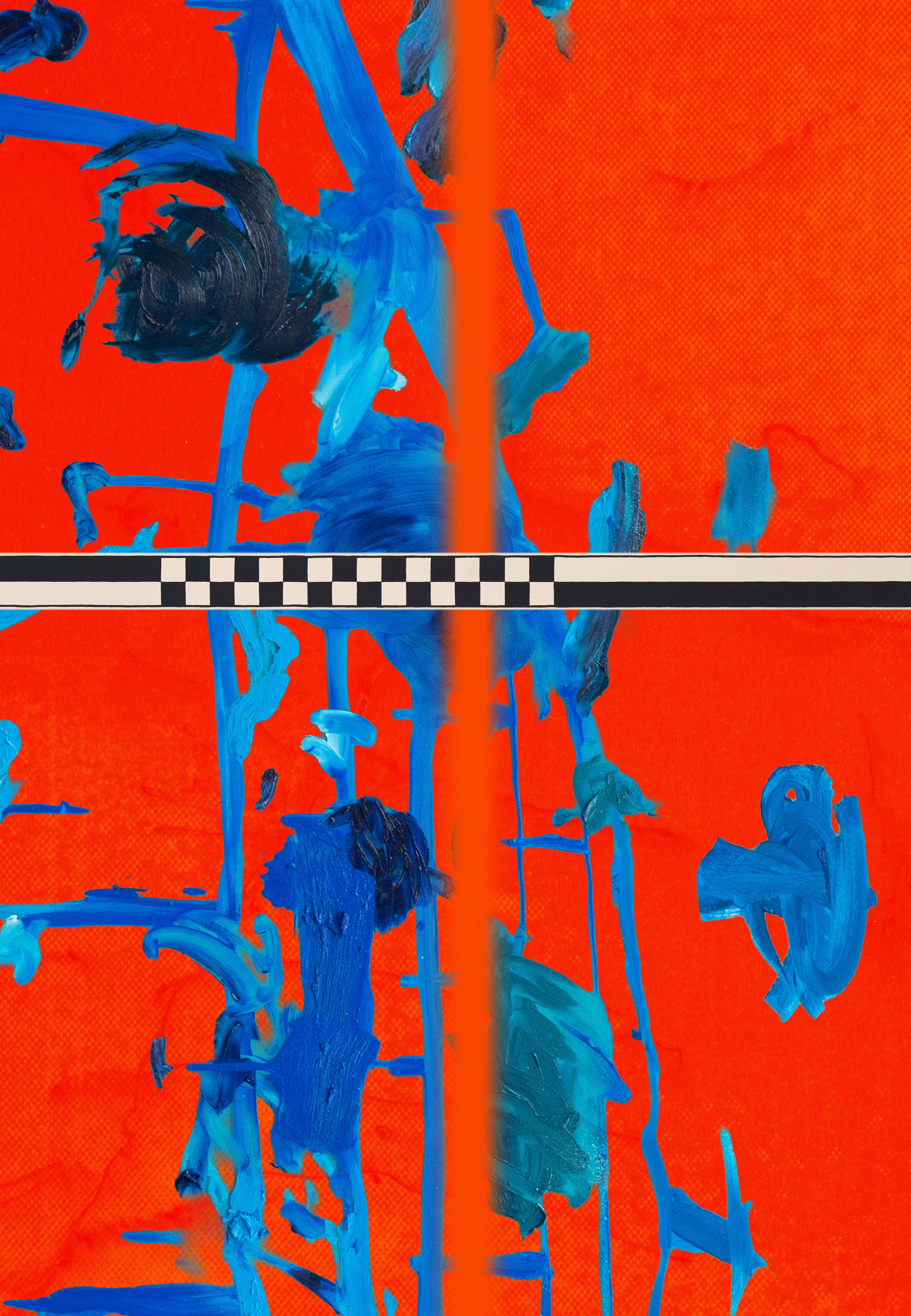 Shockline marks the debut of Horowitz’s digital paintings — an electrified translation of his physical practice into digital form for the first time. These hybrid works combine oil paintings, drawings, and customized checkered registers — adapted from archaeological scales and reimagined as recurring devices in his practice — with scanned and photographed material and virtual brushwork. In digital space, the compositions achieve an almost impossible possible, moving with a speed and fluidity resistant to physical media. They radiate propulsion, urging the viewer forward, while extending Horowitz’s long-standing interest in cross-media translation and retaining the improvisational edge and conceptual wit that have defined his work from hCoin in 2015 to his Nouns DAO–funded film.