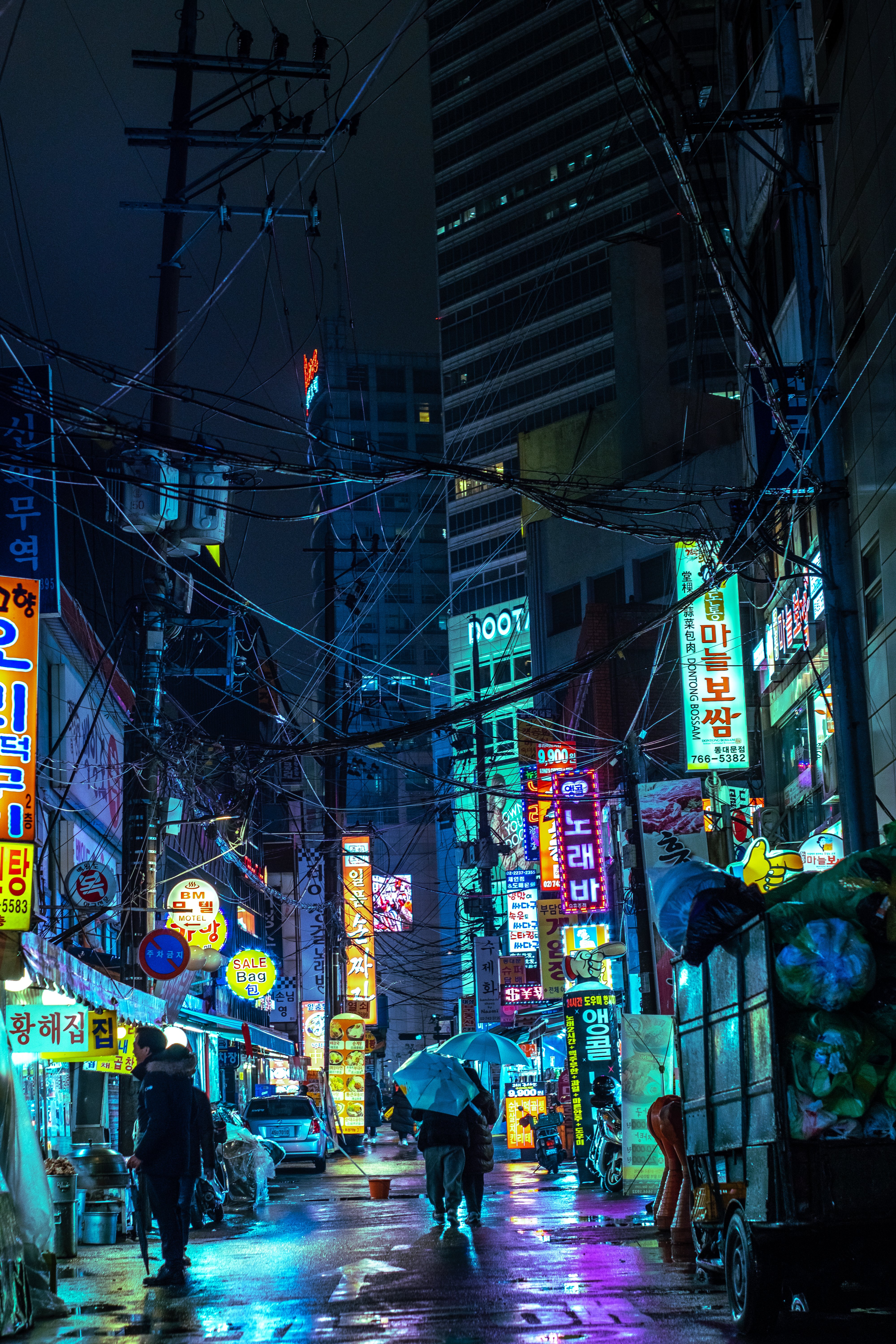This is my best image of all time, it is the cover of my book, it has been my first ever Blacklight Print. It is a representation of all my work before and after. There is no better image from me and I took this on a winter day when the rain was falling in the streets of Seoul, South Korea. It was taken in the streets of Dongdaemun while I was out shooting. It is precious to me. The signs, the ambiance is the perfection of cyberpunk. Purchasing this photo includes a signed copy of my book.