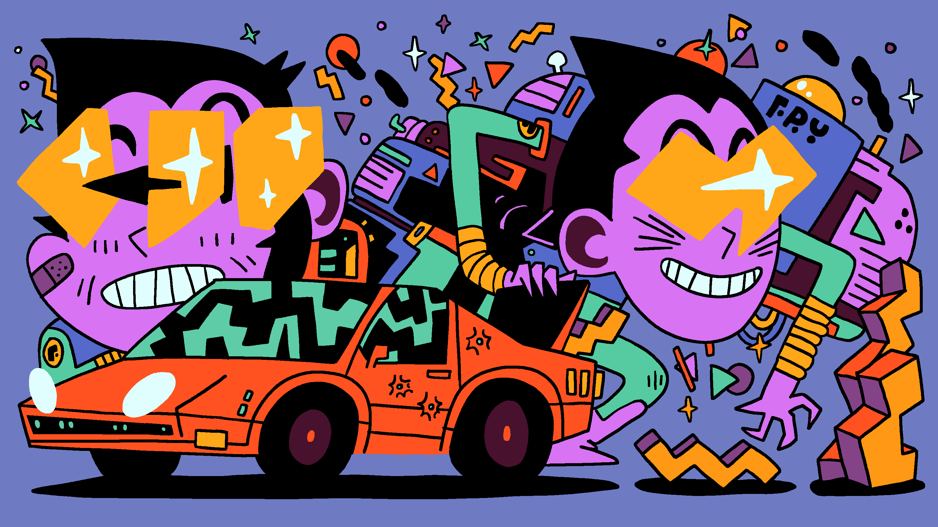 Created with the help of an AI model I fine tuned with dozens of my old works. Selected three outputs to interpret and drew a single composition to wiggle to life.