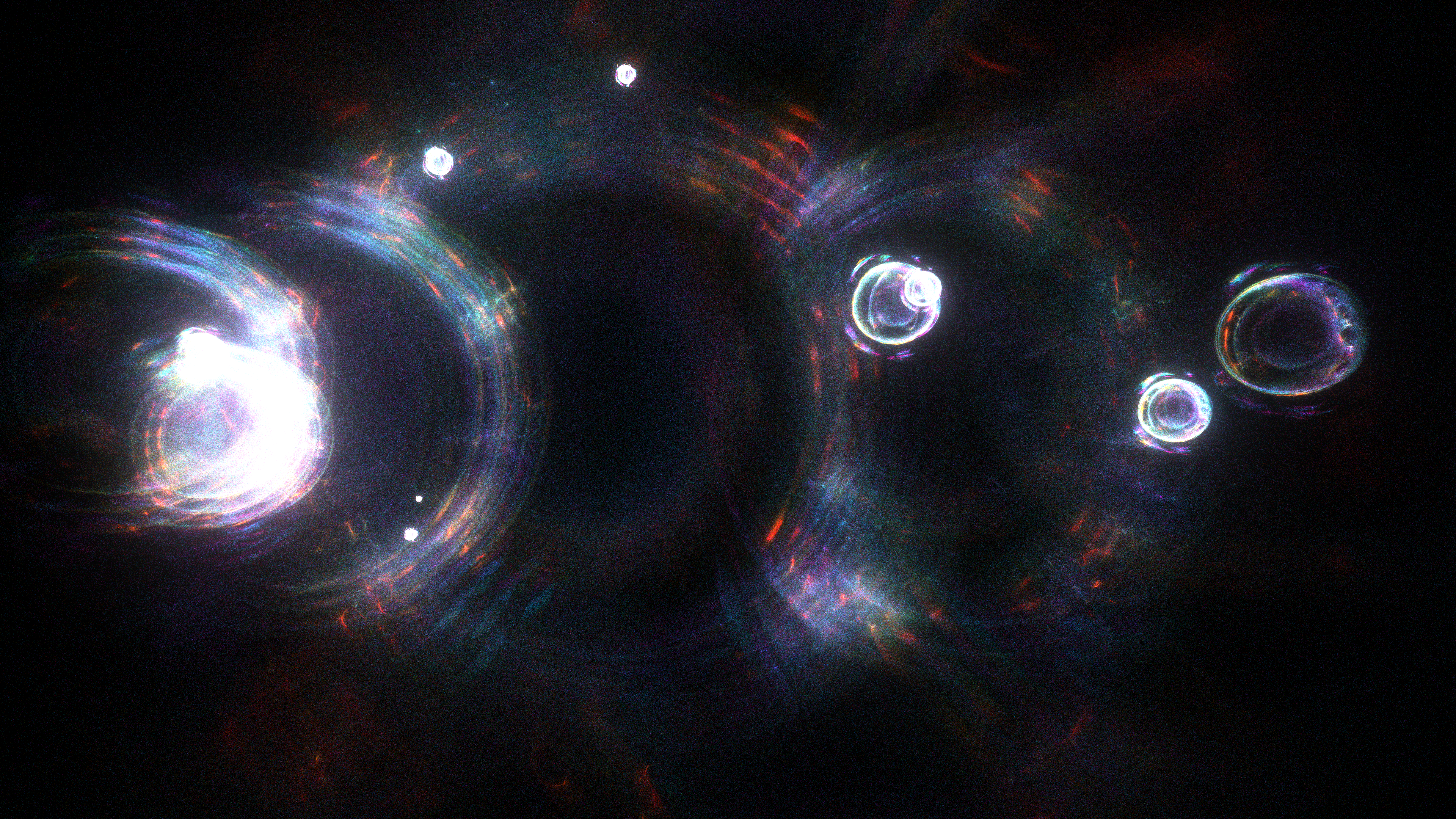 <p>In “A broken symmetry — the cat’s parabola,” HAL09999 experiments with slight variations on the initial conditions of a system made from millions of particles. By using simple physics in what the artist calls a “quasi-simulation,” these pixels are scattered through the space of the screen without any intention of a specific outcome. Any shapes observed in the final images are the consequence of the primordial asymmetry applied to the original system.</p>