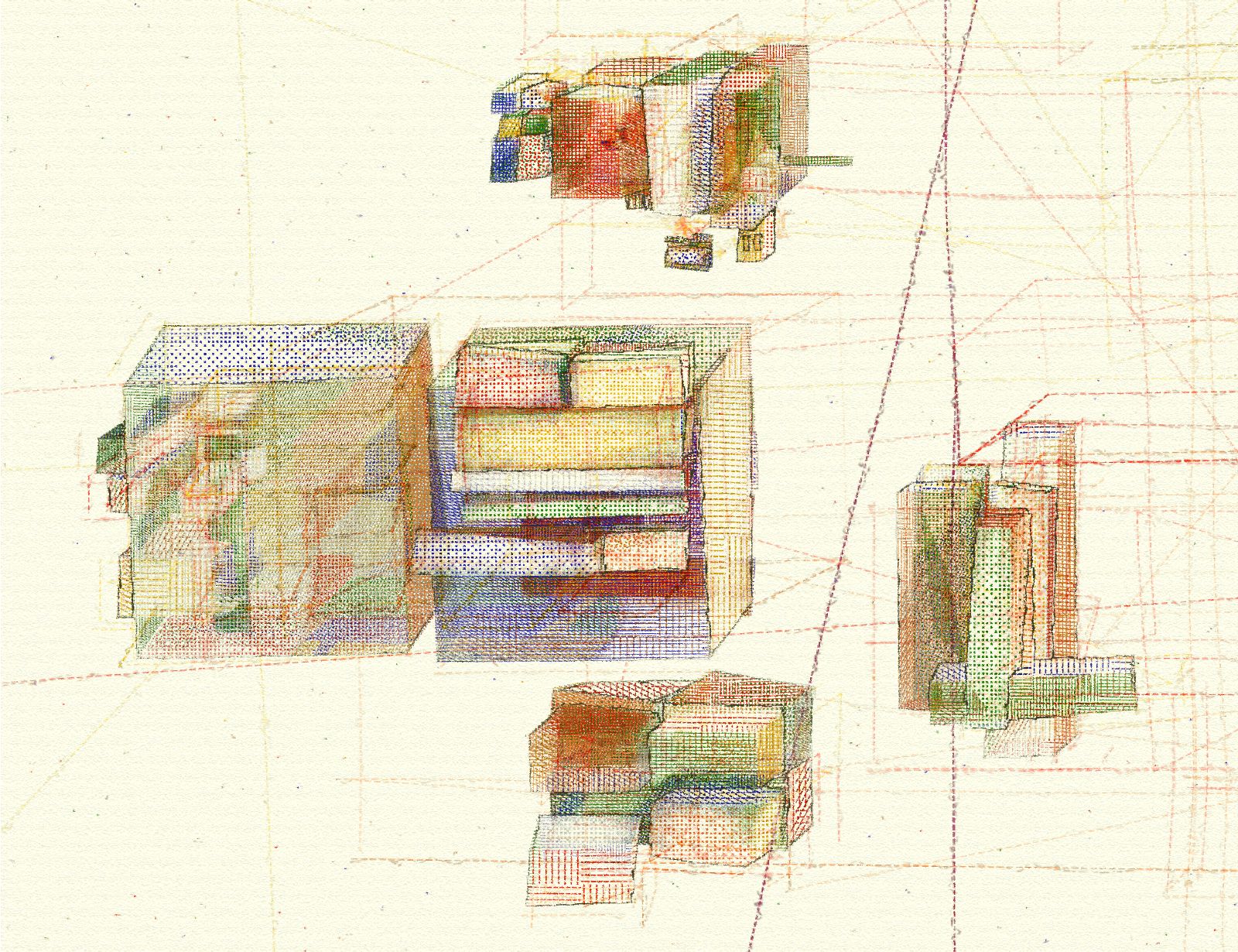Each piece in the collection will first un-solve (where blocks are randomly rotated and translated from their initial positions), then solve (where the blocks are rotated so that each side of the structure has a uniform color), and finally reset itself (where the blocks return to their initial positions). Each piece is therefore its own puzzle and there is a secret logic to solve every one. Fortunately, the viewer will never have to understand the methods to get a solution–but they can find pleasure in the show as the structure changes infinitely on its own.