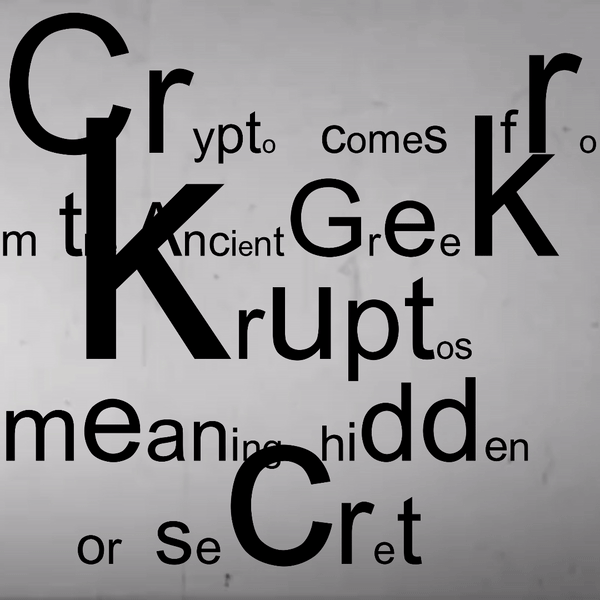 Crypto comes from the Ancient Greek κρυπτός (kruptós), meaning hidden or secret. View more at hex6c.art/kruptos