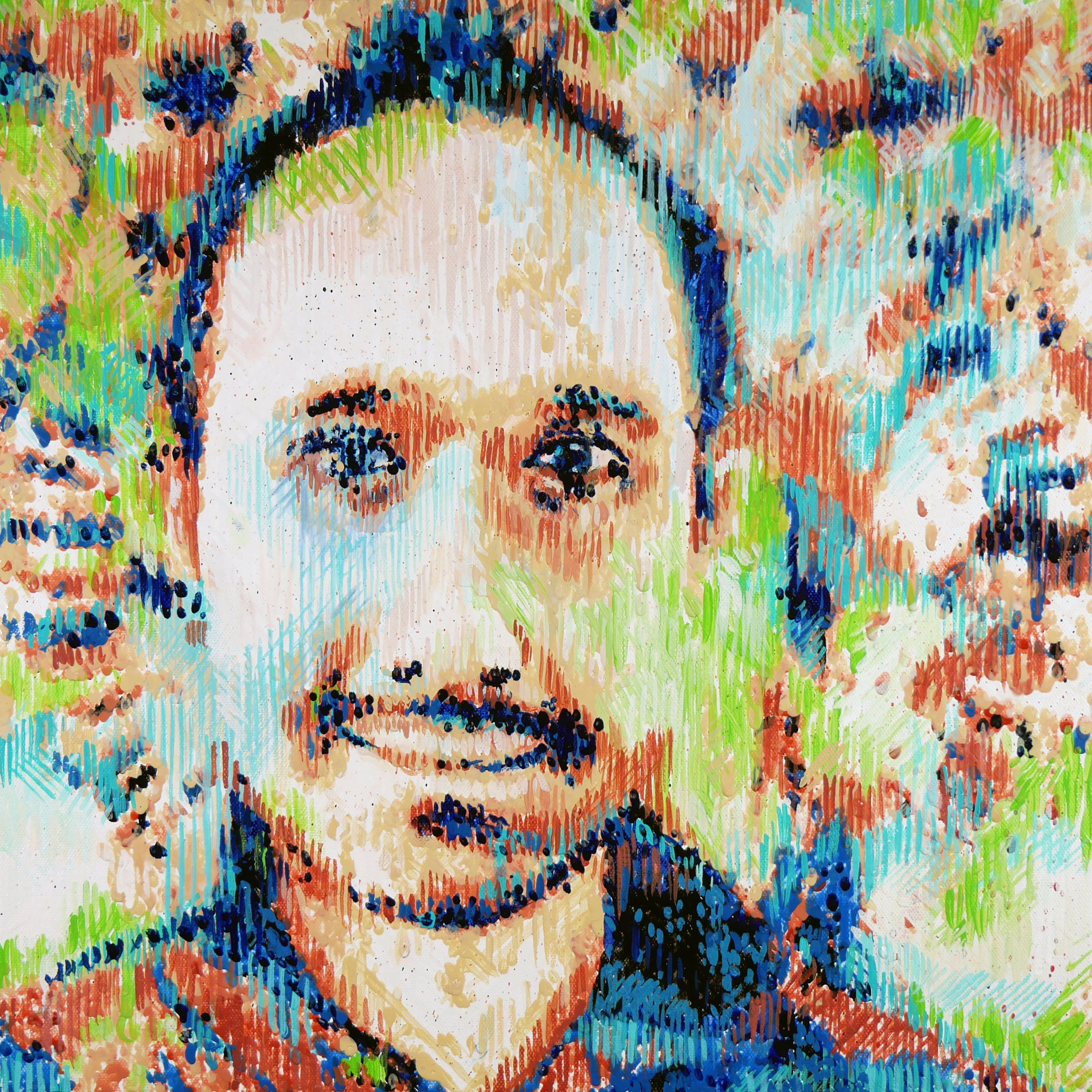 artonomous portrait of Sebastien. The robot used multiple style transfers and hundreds of feedback loops to complete this painting with 14,441 strokes over the course of 4 days.