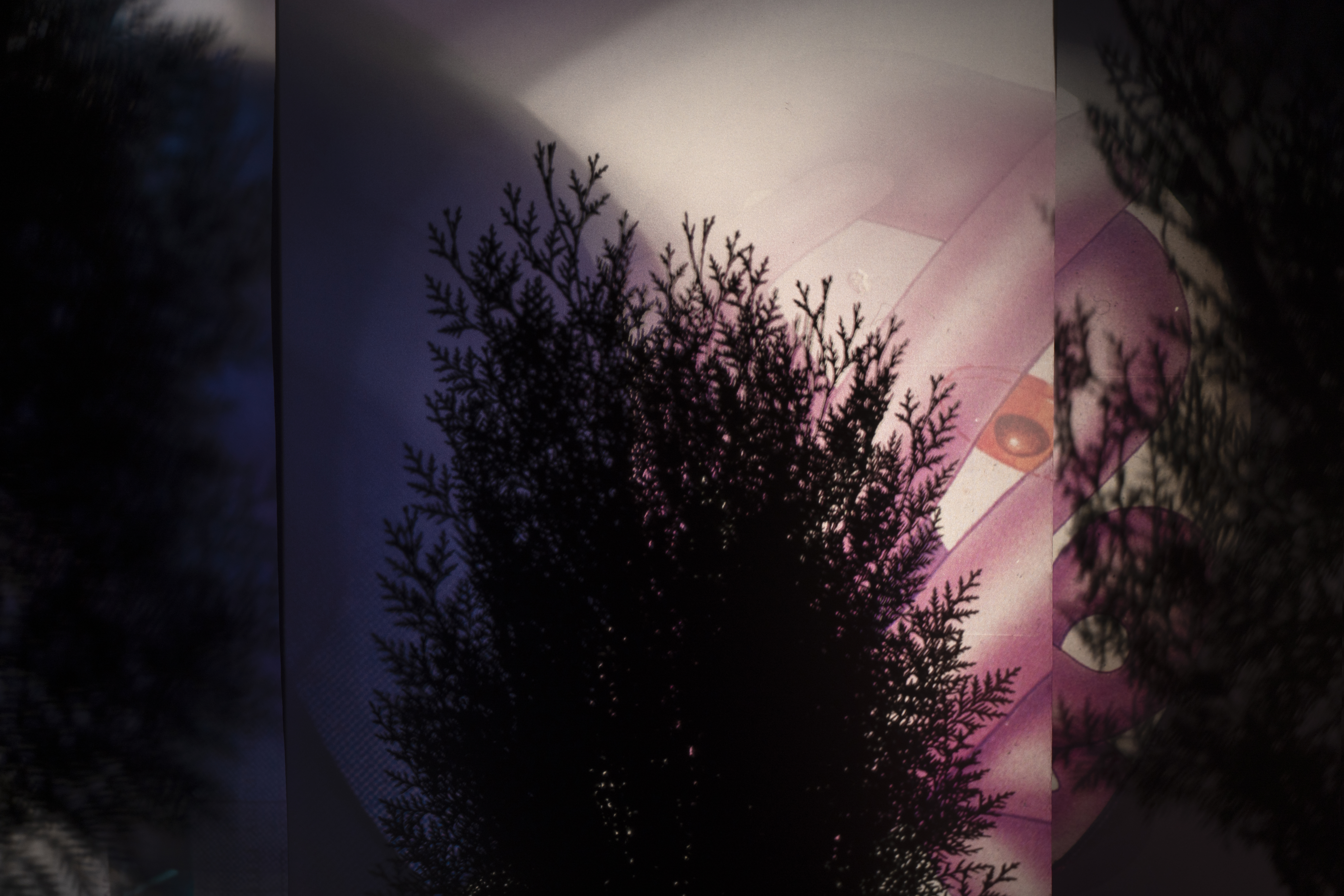 This image is about "isolation". About anything that can be isolated. it can be a particular place, location or even gender. Yalda used some biological film slides of female body anotomy and projected them on some isolated plants. Sometimes manipulating familiar images results in unfamiliar.