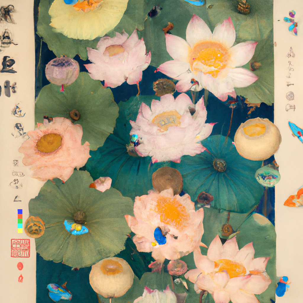 The addition of my artist seal 蔡金娜 (Choy Gina) indicates authorship and enhances composition. While the DALL·E watermark is rotated vertically as a second seal to reflect the medium of AI.