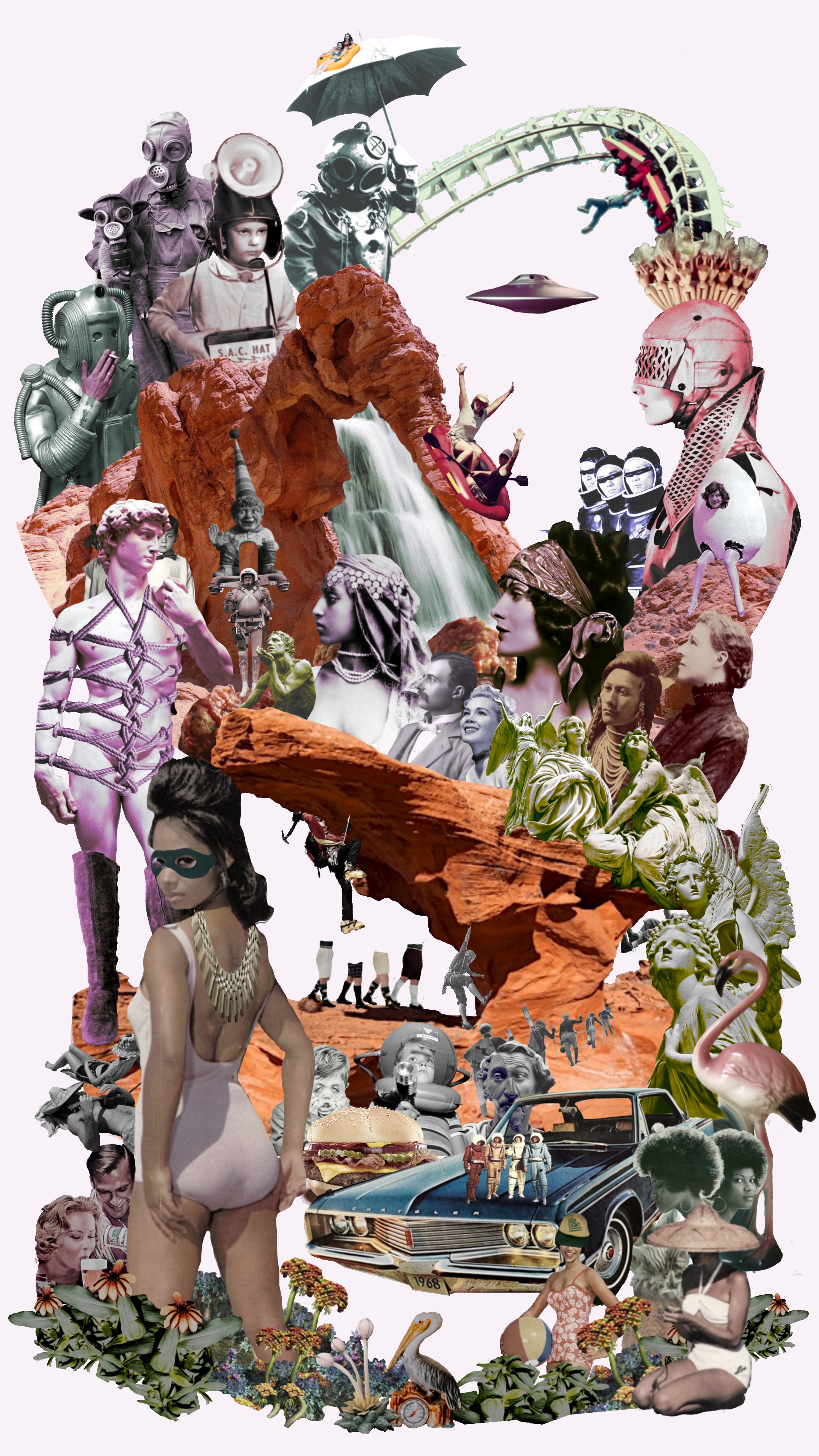 My works are digital collages heavily influenced by vintage visions of the past. Breathing new life and thrusting them with retroactive effect and force into our present day. Turning concepts from long ago into fresh visuals, and bygone icons into modernized scenes reminiscent of science fiction locations from another era. A lingering taste of what once was, and what could still be.