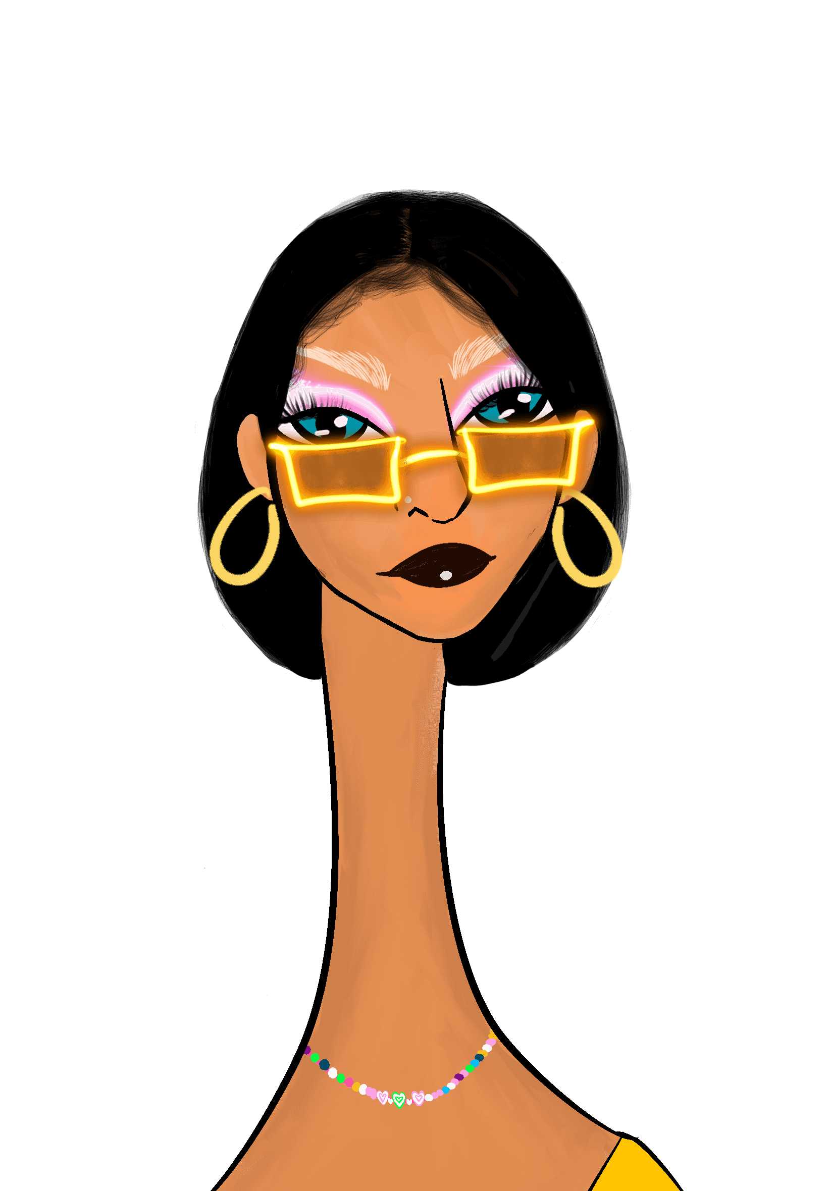 This Long Neckie Lady #1360 is a fine art, hand drawn, computer generated collectible out of 3333 diverse females created by 12-year-old digital artist Nyla Hayes. Each Long Neckie features an elongated neck that is inspired by Nyla’s favorite dinosaur, the brontosaurus. Nyla has collaborated her signature long Neckie collection with Andi Rutz, using Computer Generation to create 3333 unique ladies, with up to 101 traits, using an erc-721 contract and living on the eth blockchain.