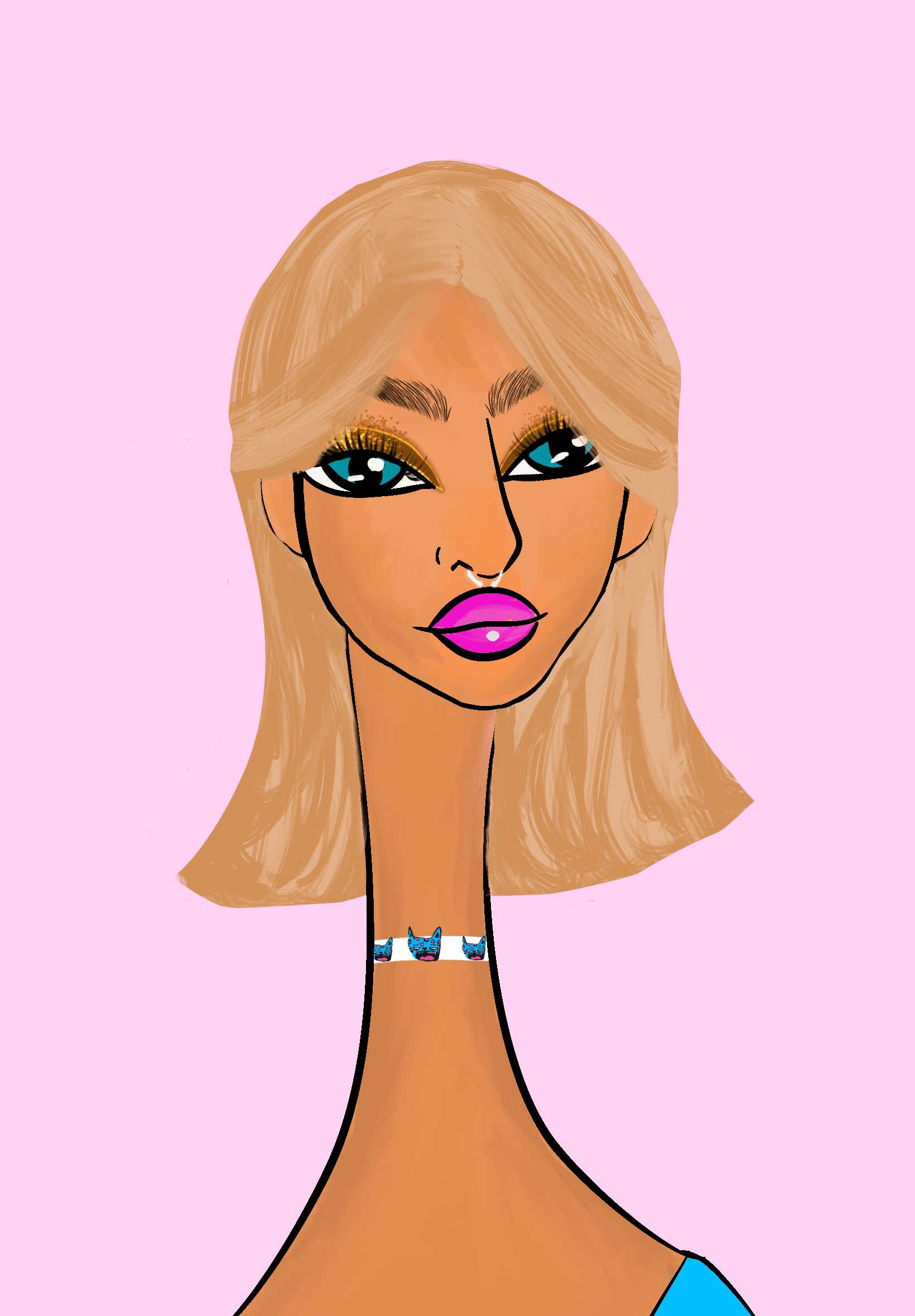 This Long Neckie Lady #1990 is a fine art, hand drawn, computer generated collectible out of 3333 diverse females created by 12-year-old digital artist Nyla Hayes. Each Long Neckie features an elongated neck that is inspired by Nyla’s favorite dinosaur, the brontosaurus. Nyla has collaborated her signature long Neckie collection with Andi Rutz, using Computer Generation to create 3333 unique ladies, with up to 101 traits, using an erc-721 contract and living on the eth blockchain.