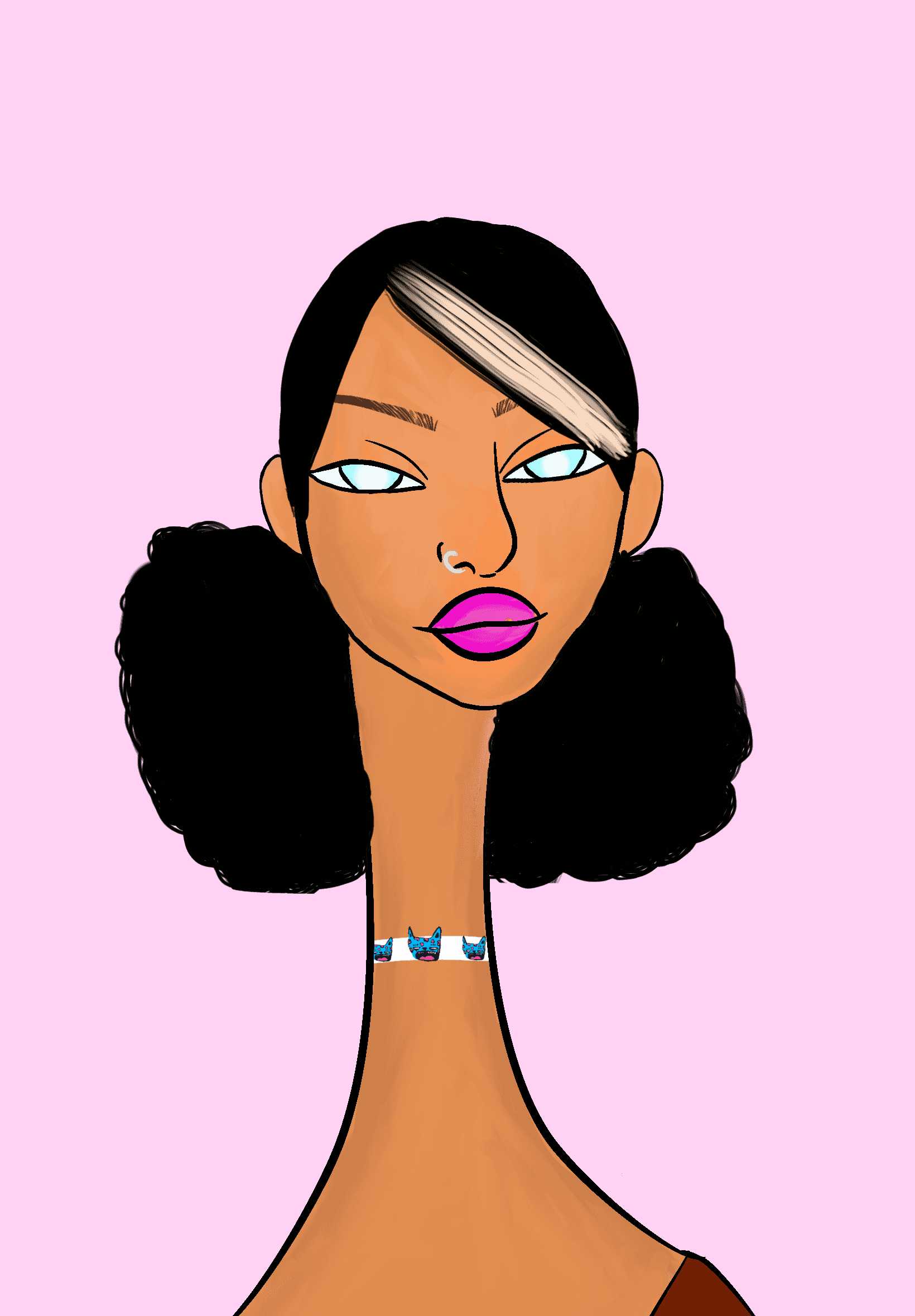 This Long Neckie Lady #2167 is a fine art, hand drawn, computer generated collectible out of 3333 diverse females created by 12-year-old digital artist Nyla Hayes. Each Long Neckie features an elongated neck that is inspired by Nyla’s favorite dinosaur, the brontosaurus. Nyla has collaborated her signature long Neckie collection with Andi Rutz, using Computer Generation to create 3333 unique ladies, with up to 101 traits, using an erc-721 contract and living on the eth blockchain.