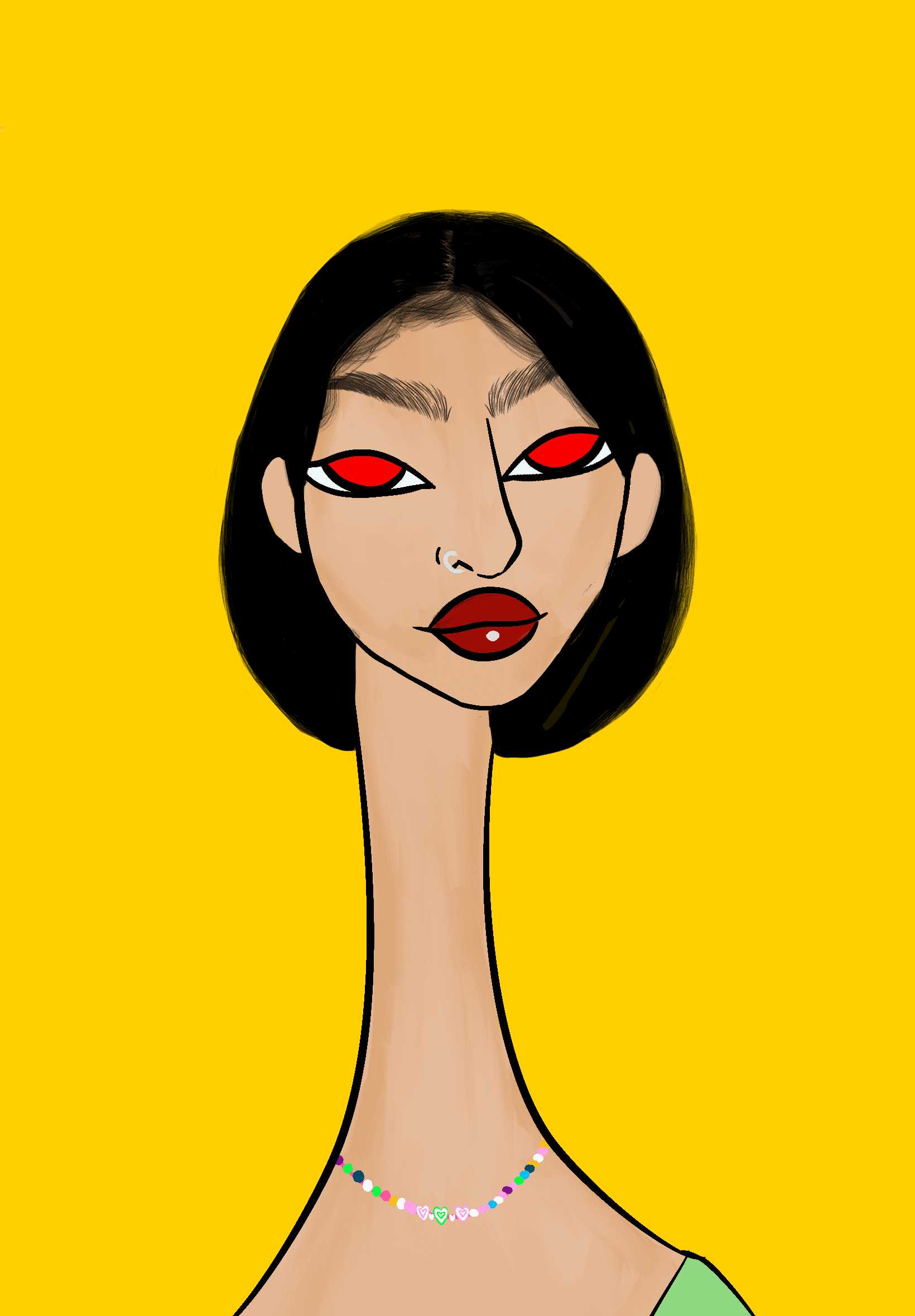This Long Neckie Lady #2567 is a fine art, hand drawn, computer generated collectible out of 3333 diverse females created by 12-year-old digital artist Nyla Hayes. Each Long Neckie features an elongated neck that is inspired by Nyla’s favorite dinosaur, the brontosaurus. Nyla has collaborated her signature long Neckie collection with Andi Rutz, using Computer Generation to create 3333 unique ladies, with up to 101 traits, using an erc-721 contract and living on the eth blockchain.