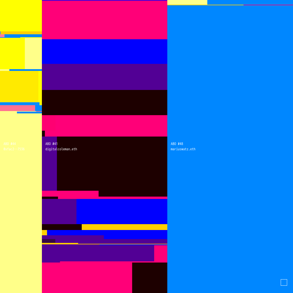 ABO #44 is connected to ABO #41 (owned by digitalcoleman.eth) and ABO #48 (owned by mariuswatz.eth).