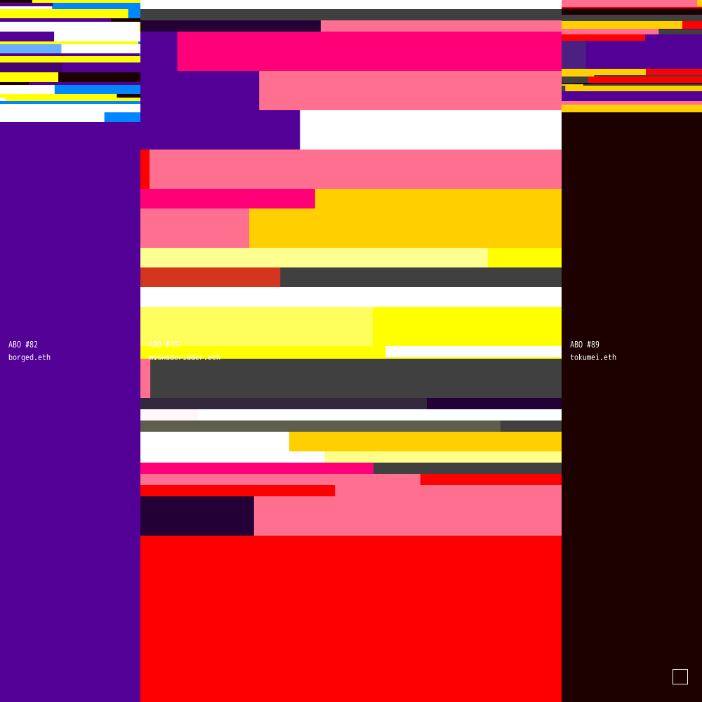 ABO #82 is connected to ABO #13 (owned by mishaderidder.eth) and ABO #89 (owned by tokumei.eth).