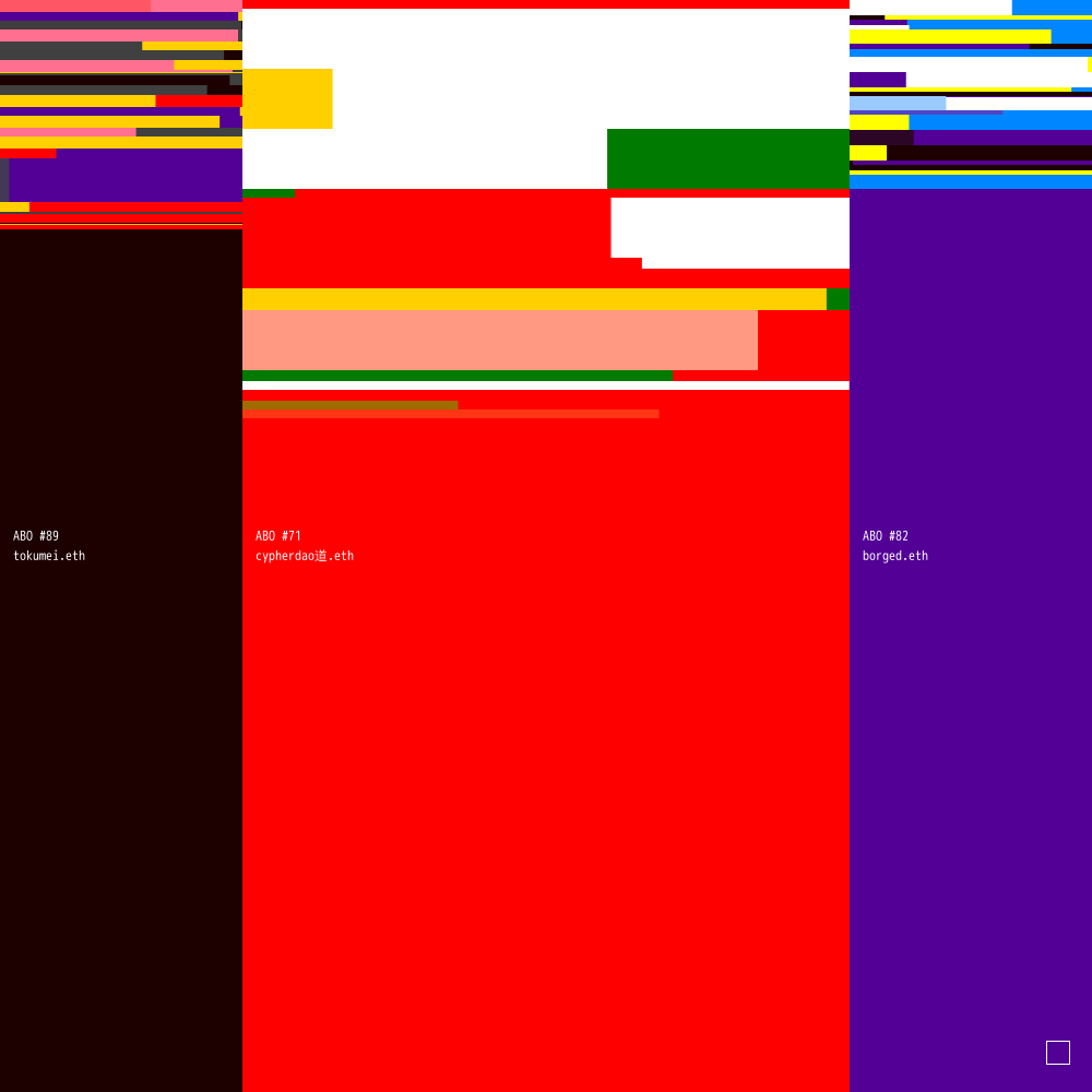 ABO #89 is connected to ABO #71 (owned by cypherdao道.eth) and ABO #82 (owned by borged.eth).
