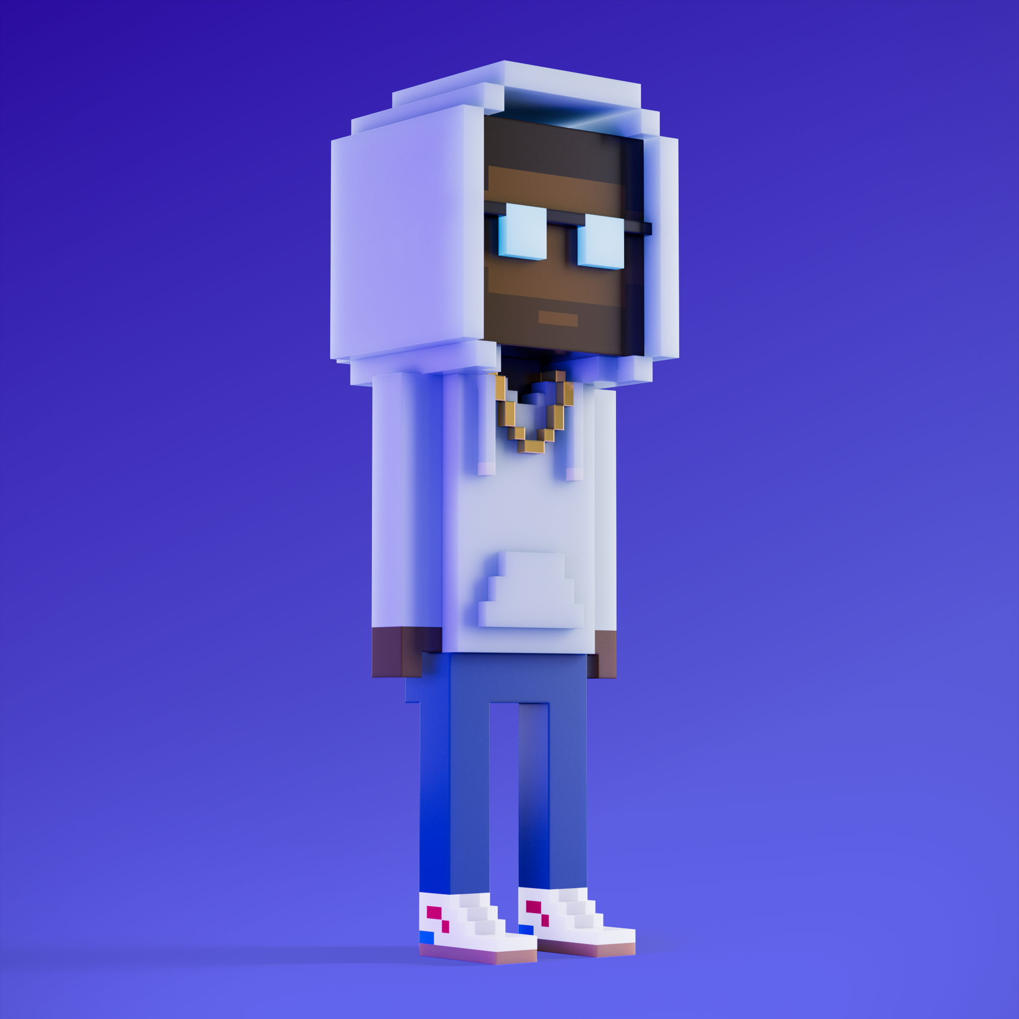 Meebits are 20,000 unique 3D voxel characters created by a custom generative algorithm.