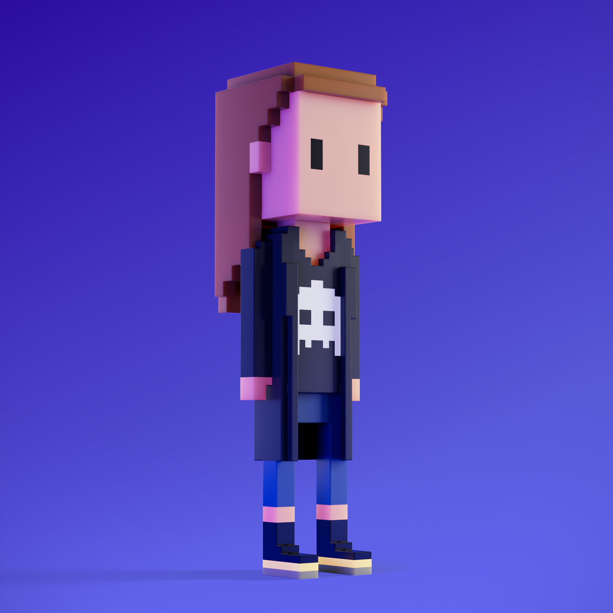 Meebits are 20,000 unique 3D voxel characters created by a custom generative algorithm.