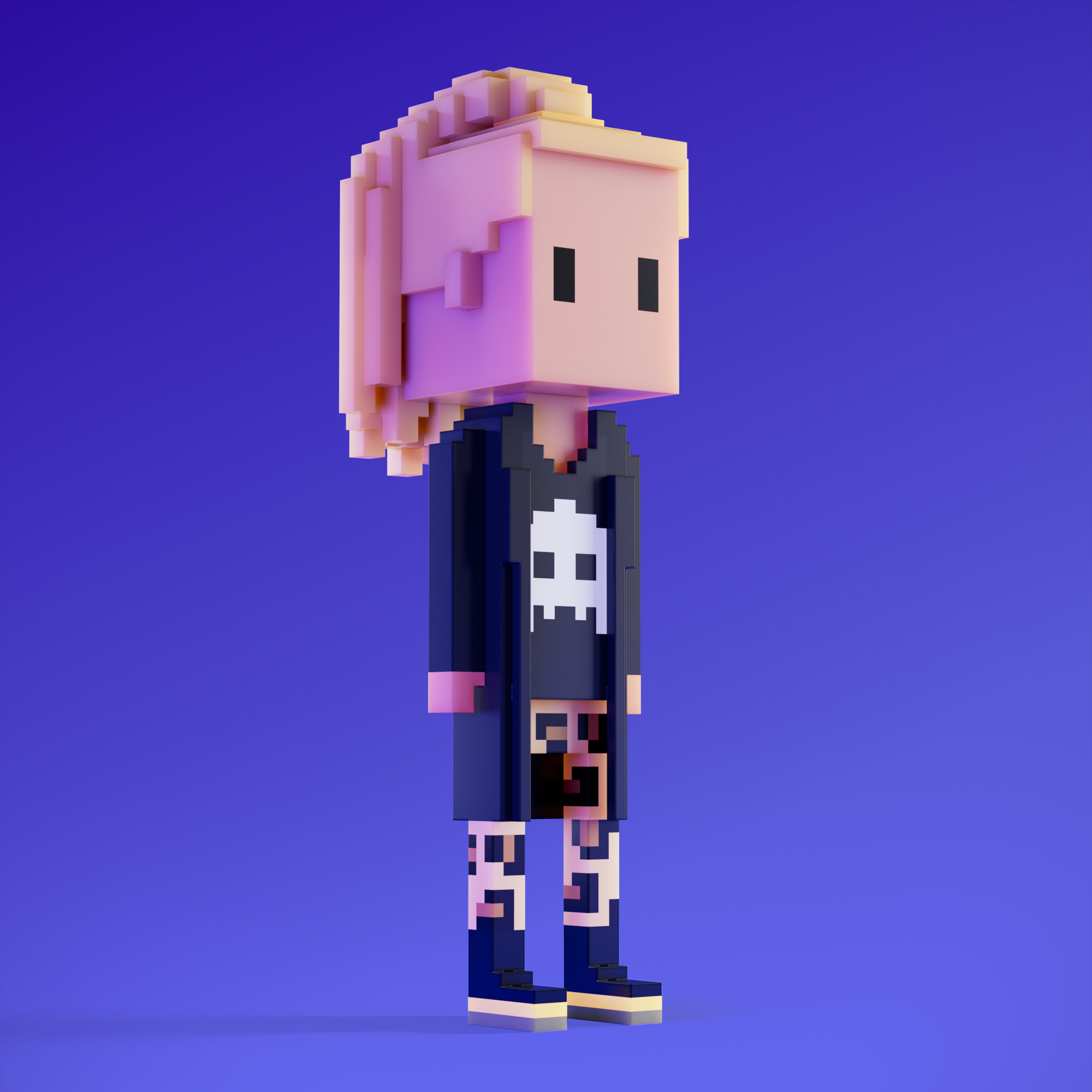 Meebits are 20,000 unique 3D voxel characters created by a custom generative algorithm.