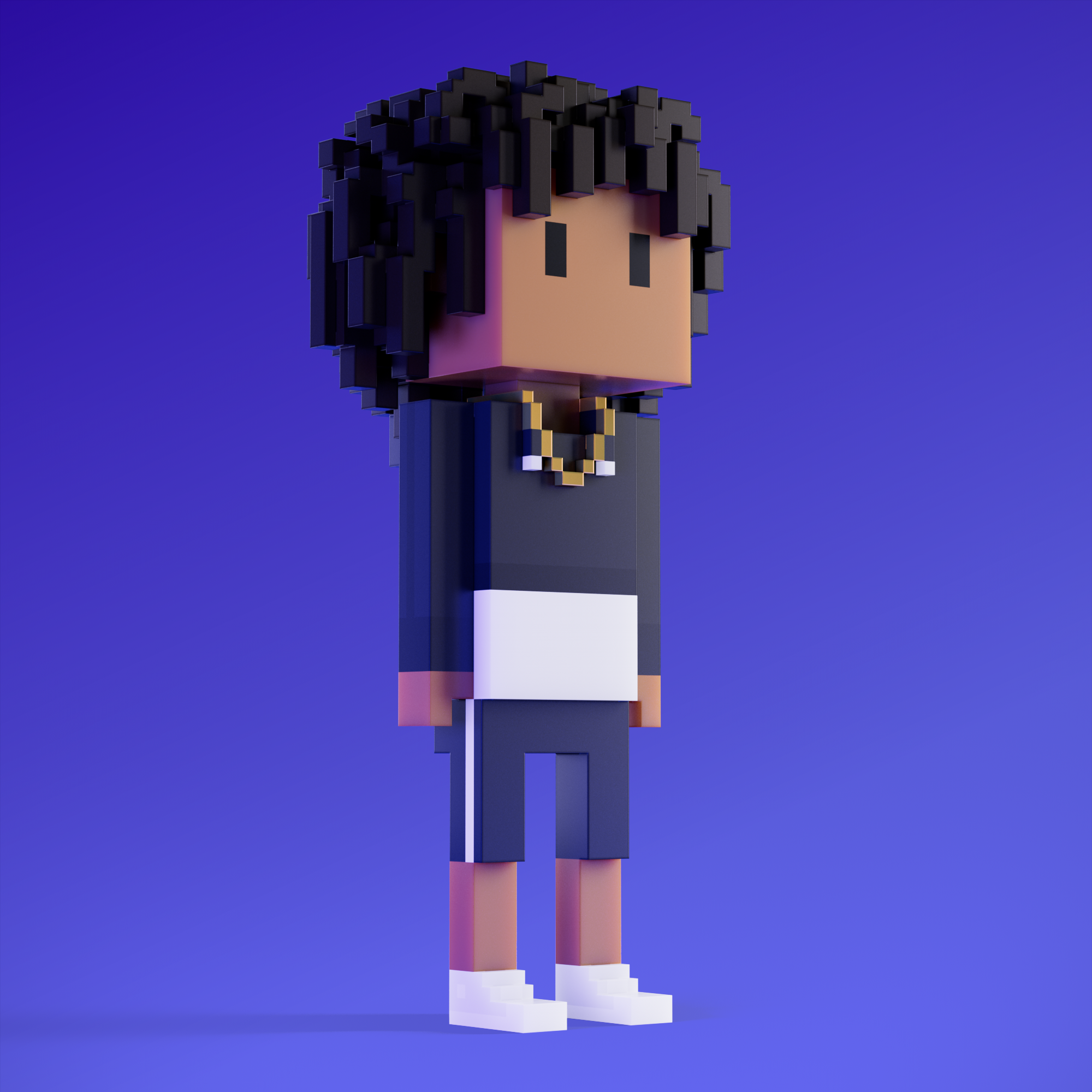 Meebits are 20,000 unique 3D voxel characters created by a custom generative algorithm.