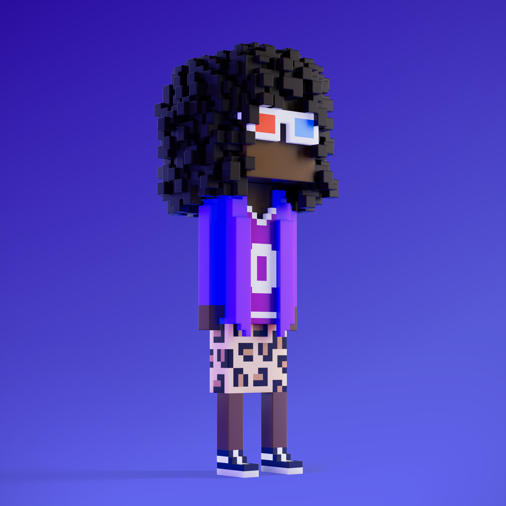 Meebits are 20,000 unique 3D voxel characters created by a custom generative algorithm.