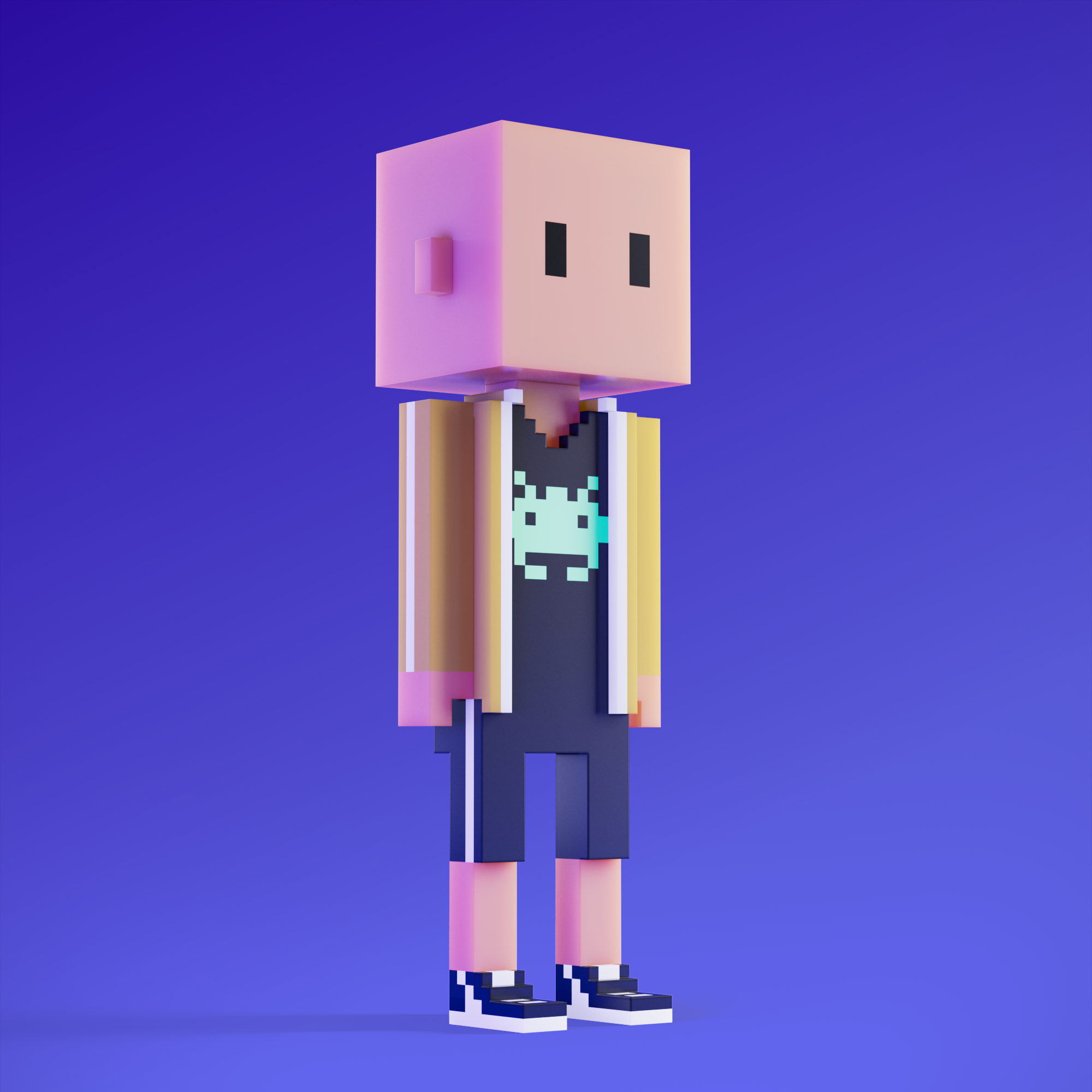 Meebits are 20,000 unique 3D voxel characters created by a custom generative algorithm.