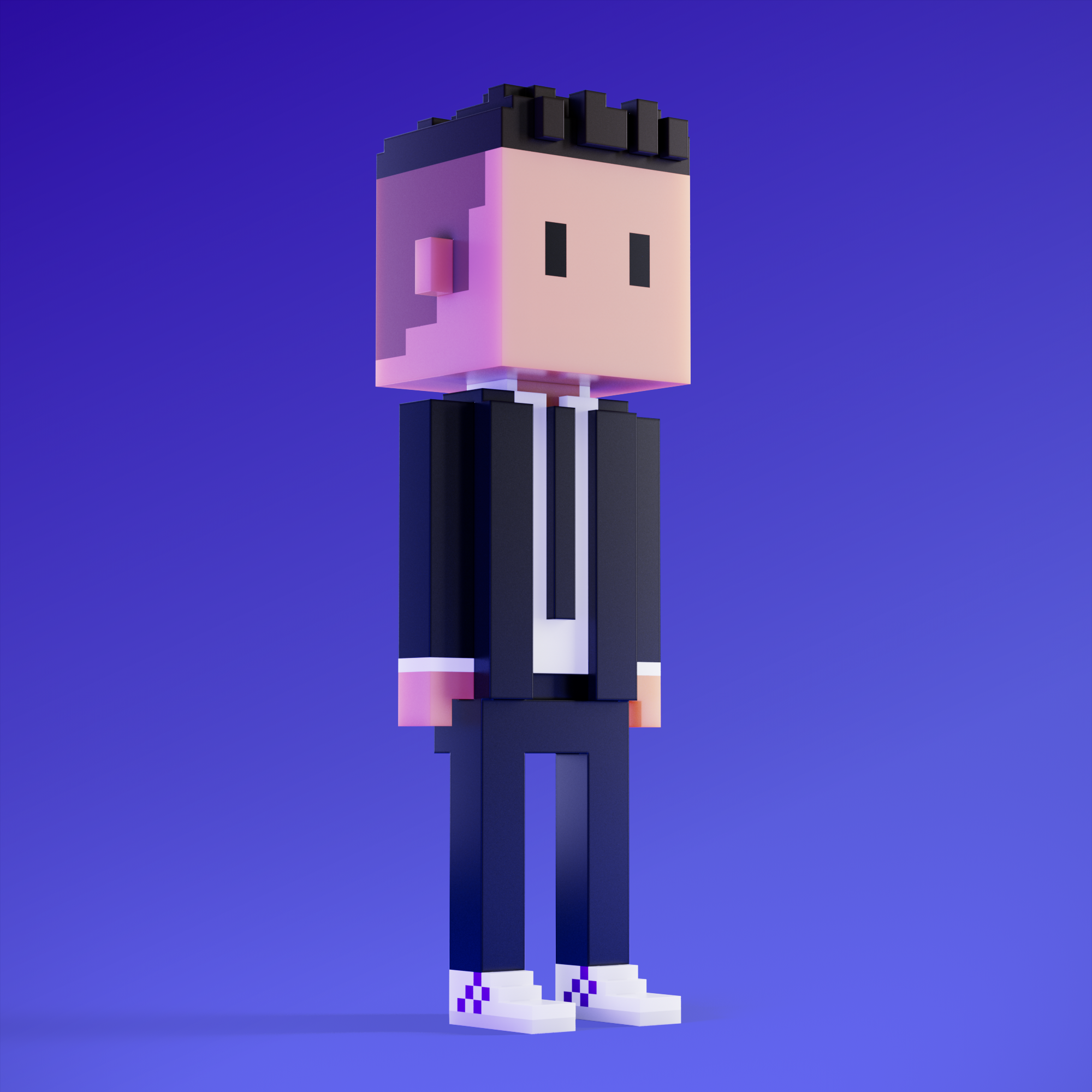 Meebits are 20,000 unique 3D voxel characters created by a custom generative algorithm.
