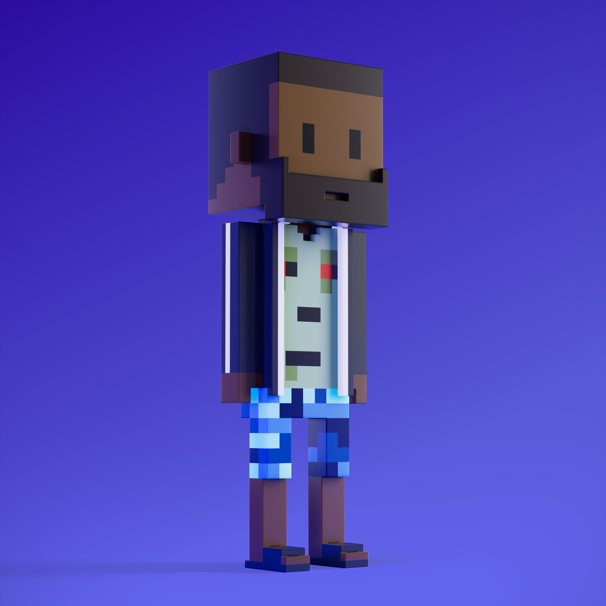 Meebits are 20,000 unique 3D voxel characters created by a custom generative algorithm.
