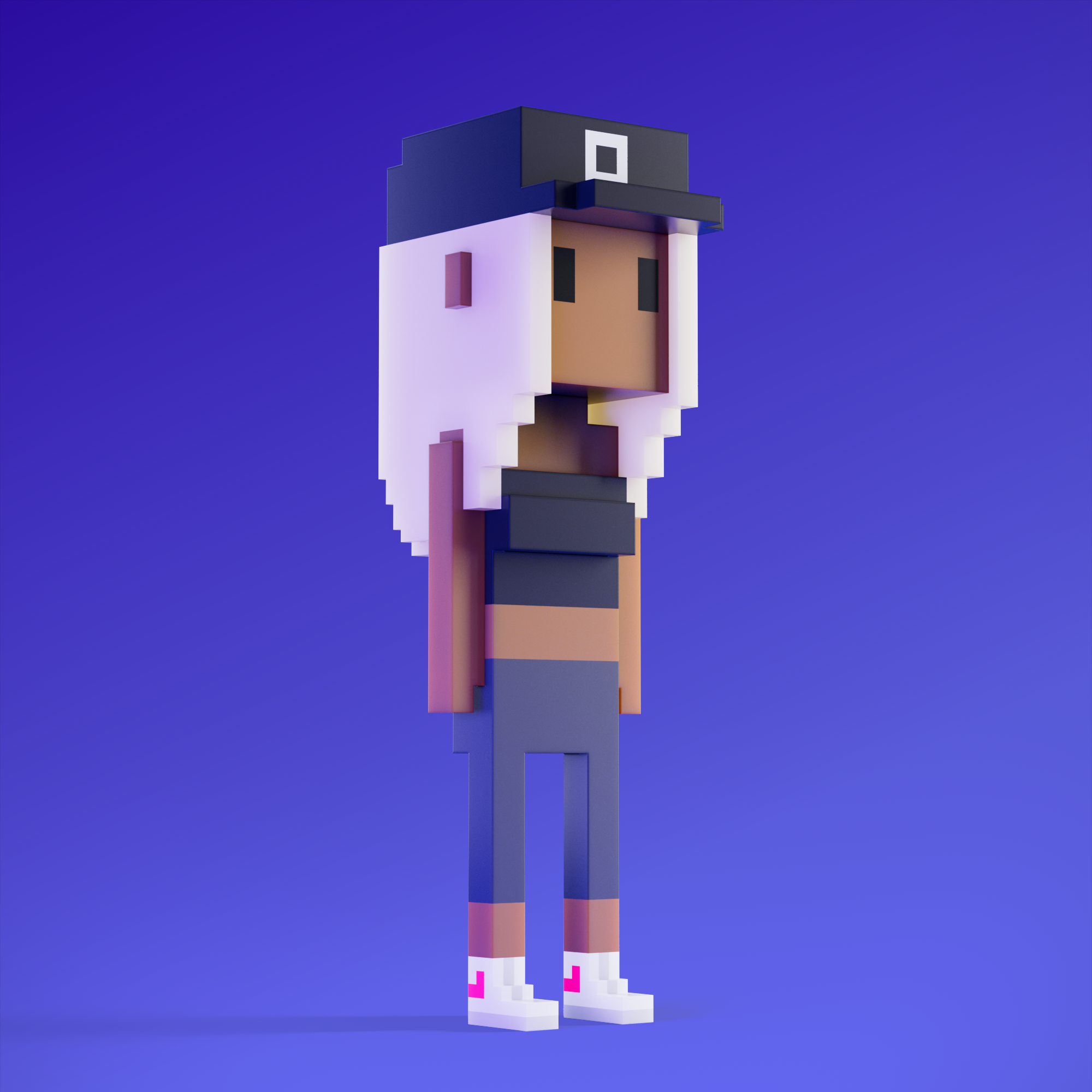 Meebits are 20,000 unique 3D voxel characters created by a custom generative algorithm.