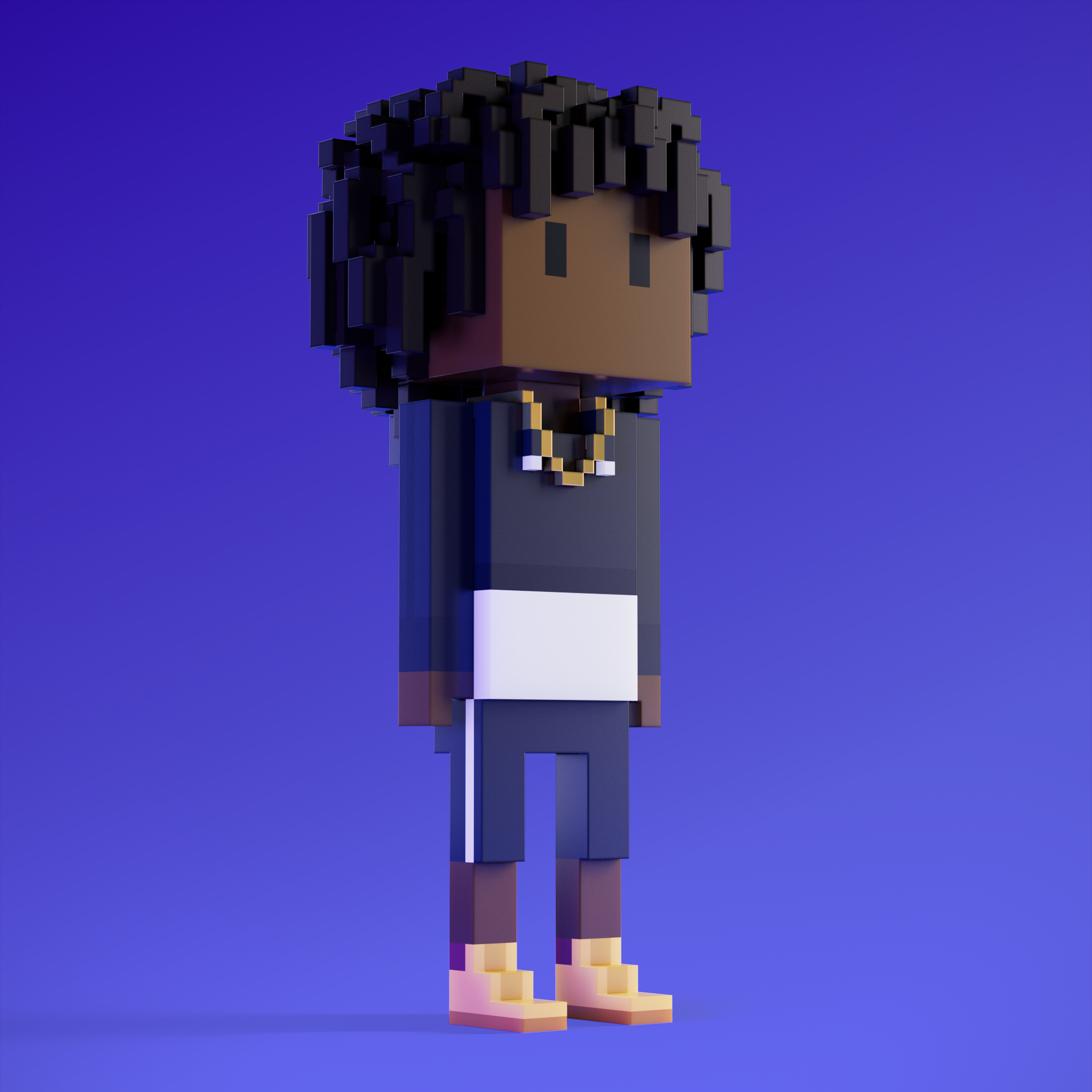 Meebits are 20,000 unique 3D voxel characters created by a custom generative algorithm.