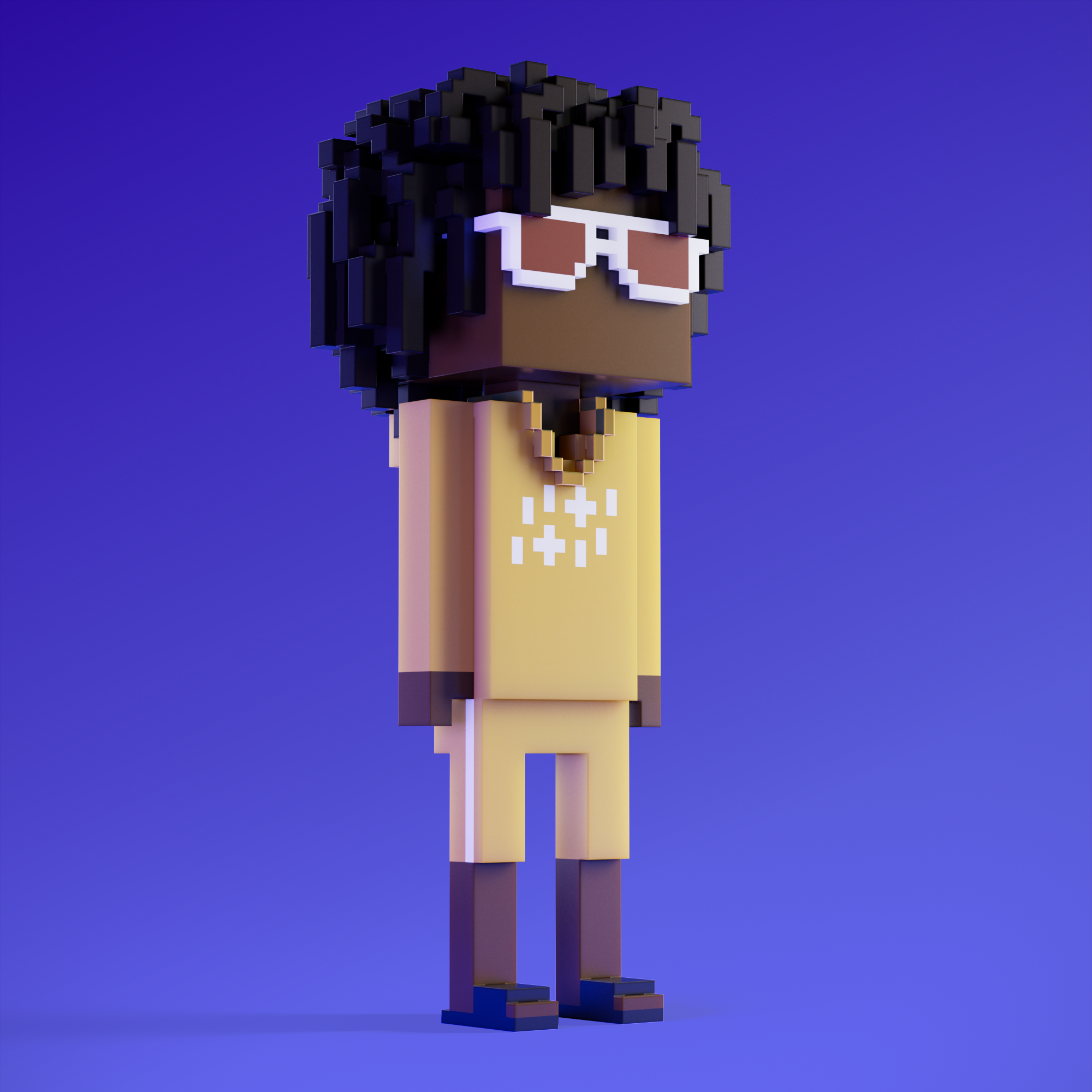 Meebits are 20,000 unique 3D voxel characters created by a custom generative algorithm.