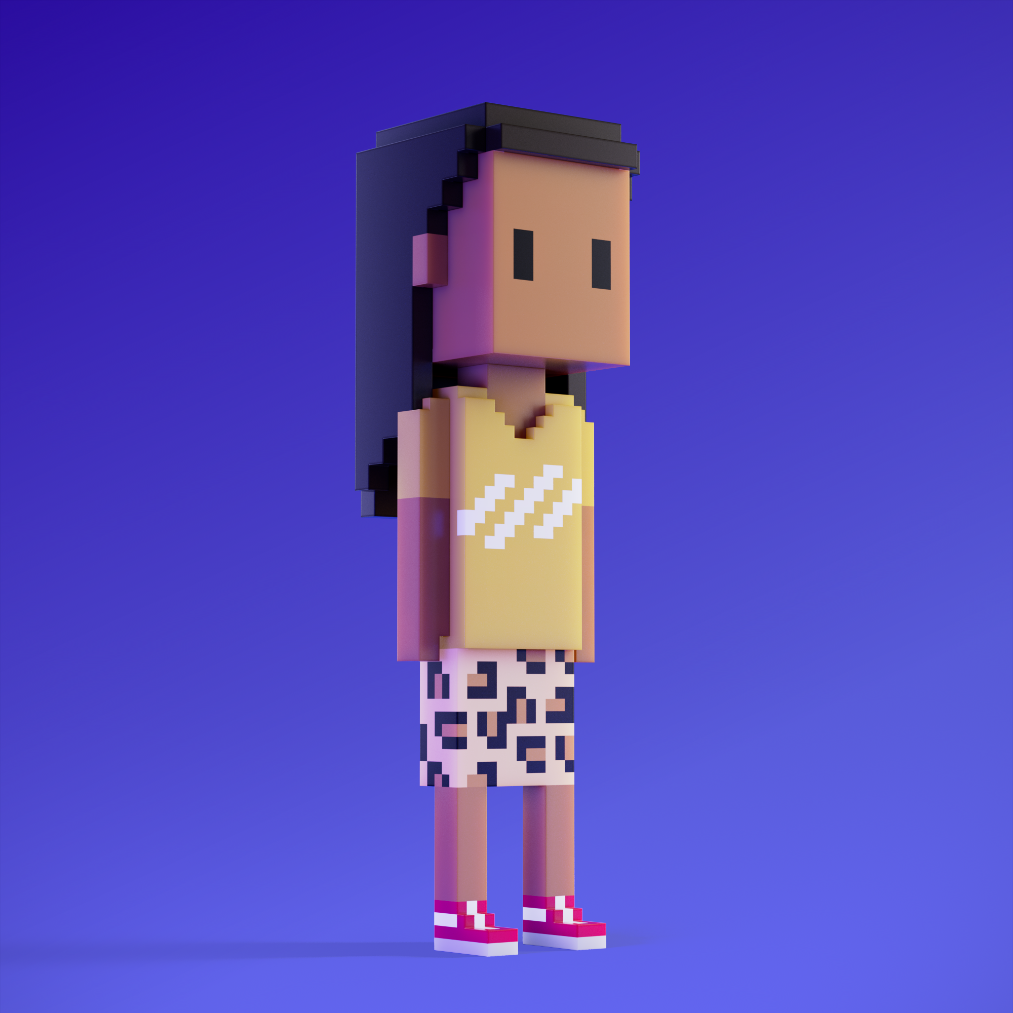 Meebits are 20,000 unique 3D voxel characters created by a custom generative algorithm.