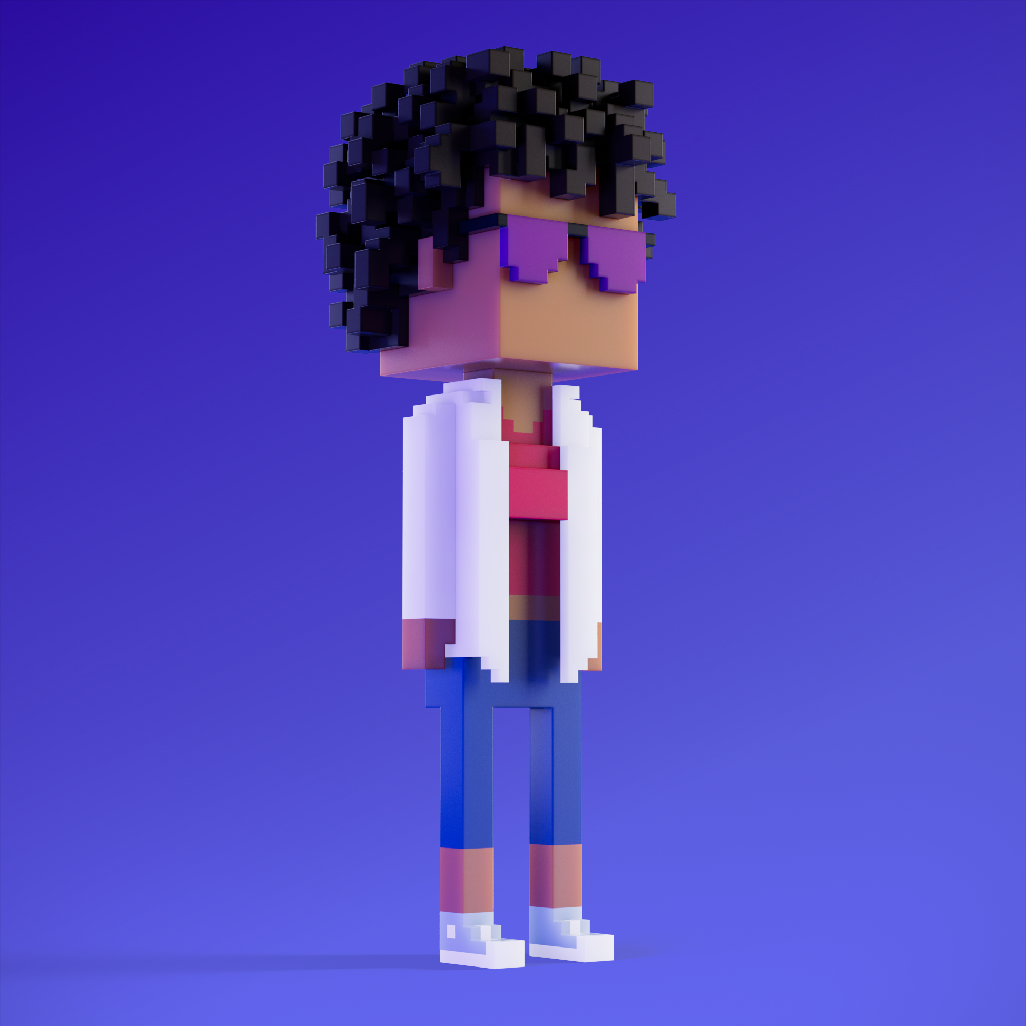 Meebits are 20,000 unique 3D voxel characters created by a custom generative algorithm.
