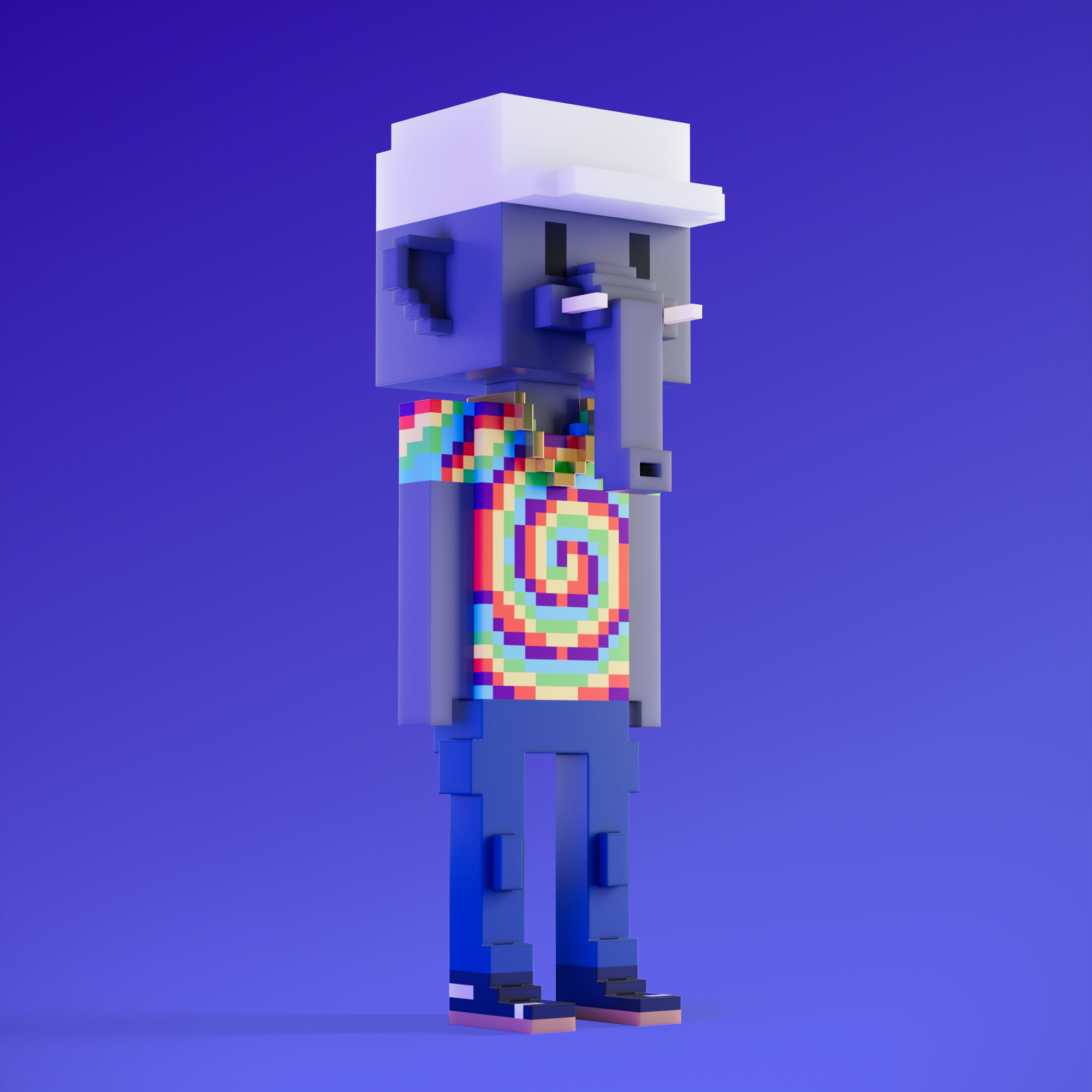 Meebits are 20,000 unique 3D voxel characters created by a custom generative algorithm.