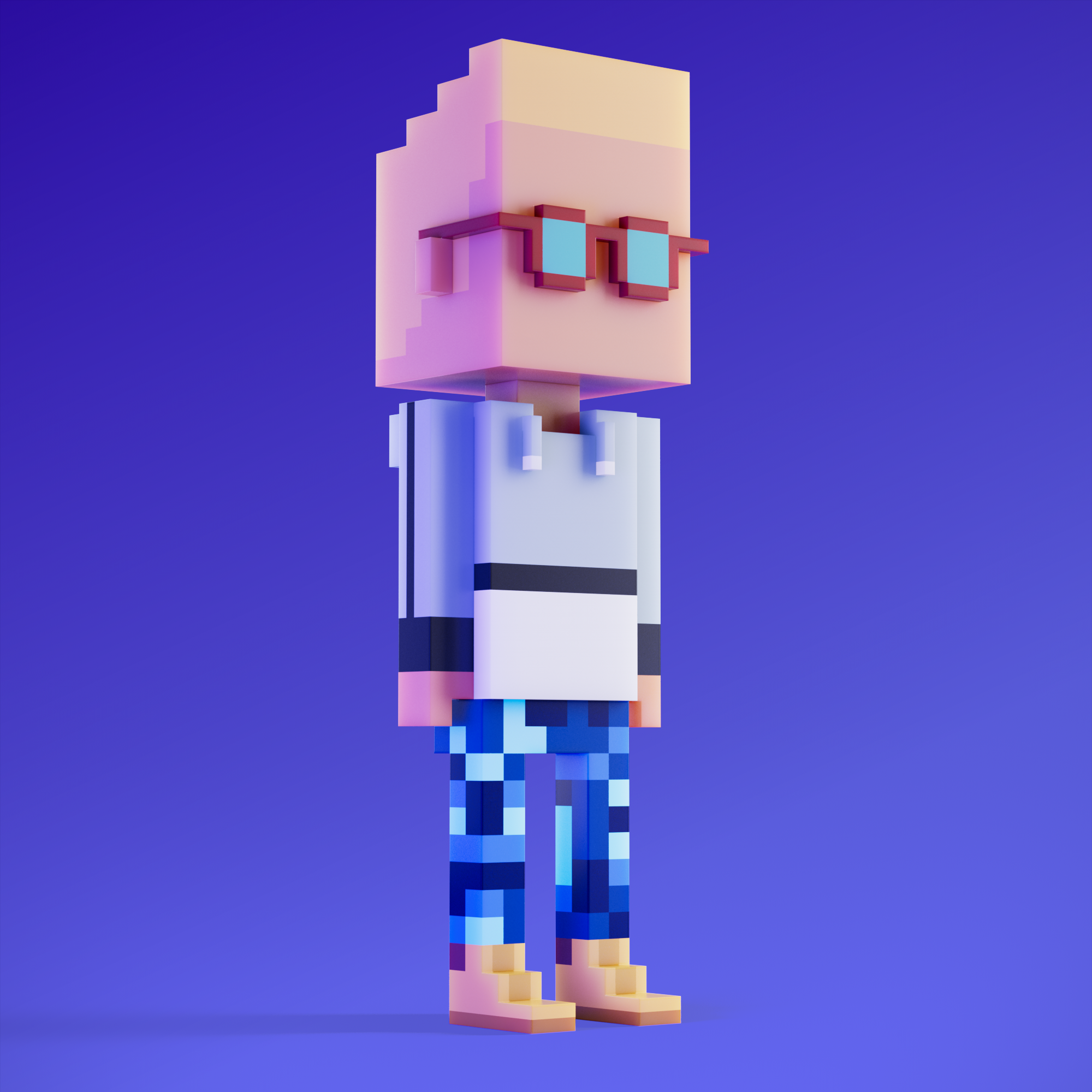 Meebits are 20,000 unique 3D voxel characters created by a custom generative algorithm.