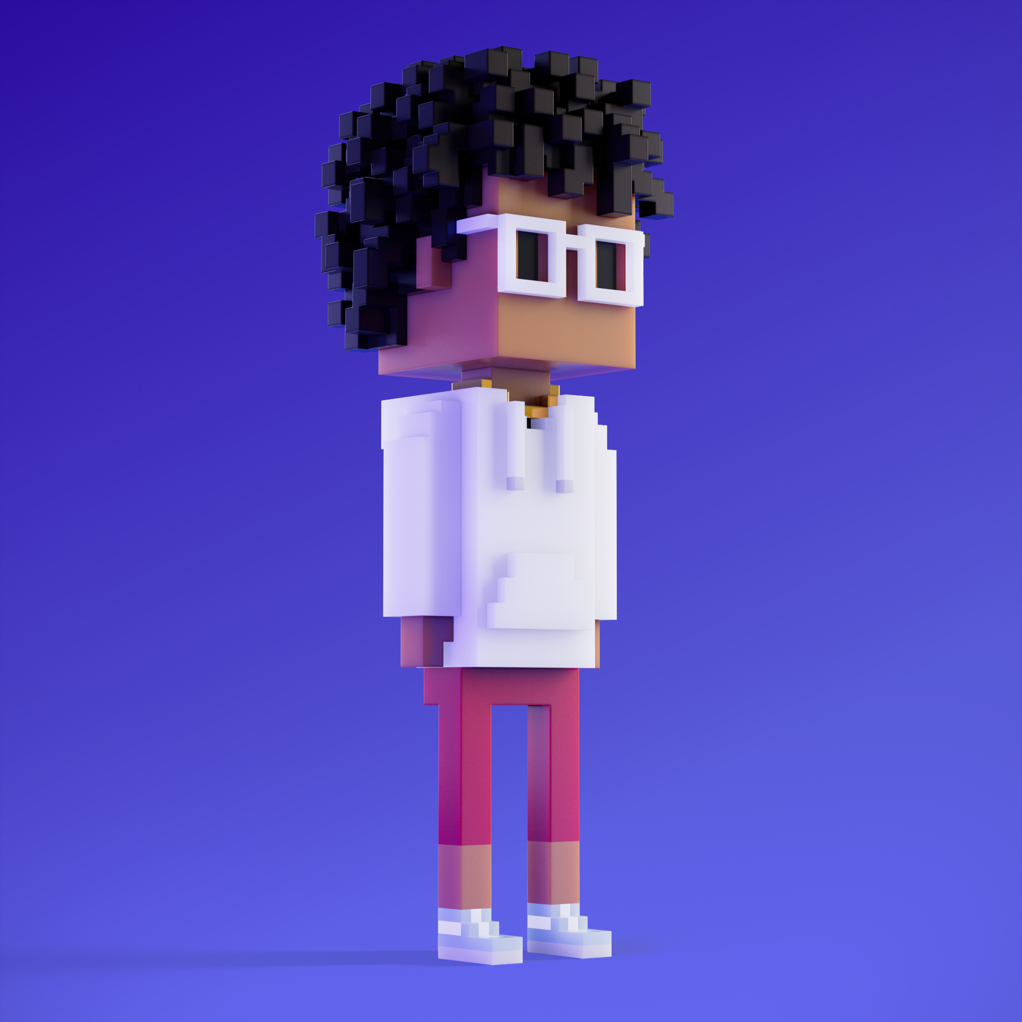 Meebits are 20,000 unique 3D voxel characters created by a custom generative algorithm.