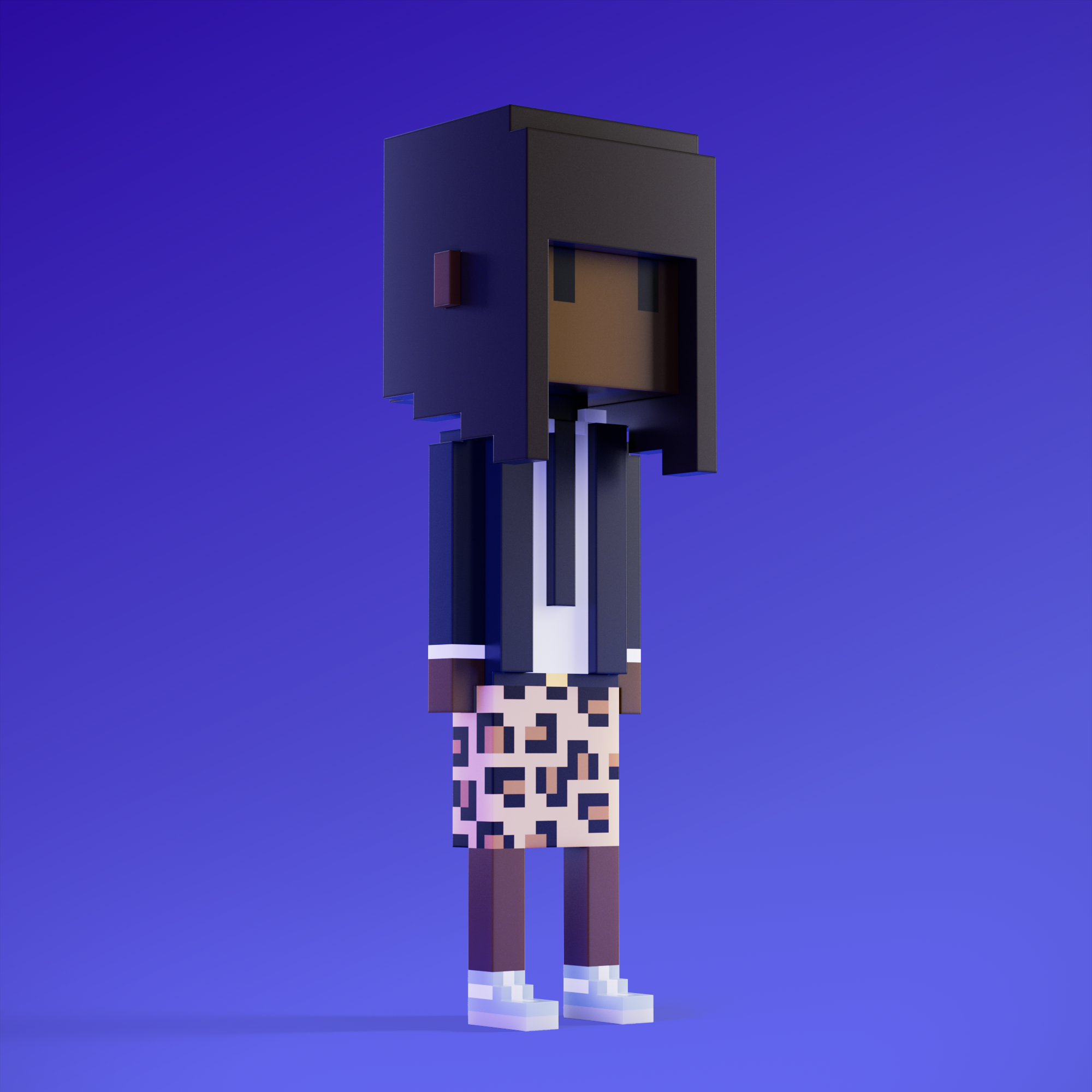 Meebits are 20,000 unique 3D voxel characters created by a custom generative algorithm.