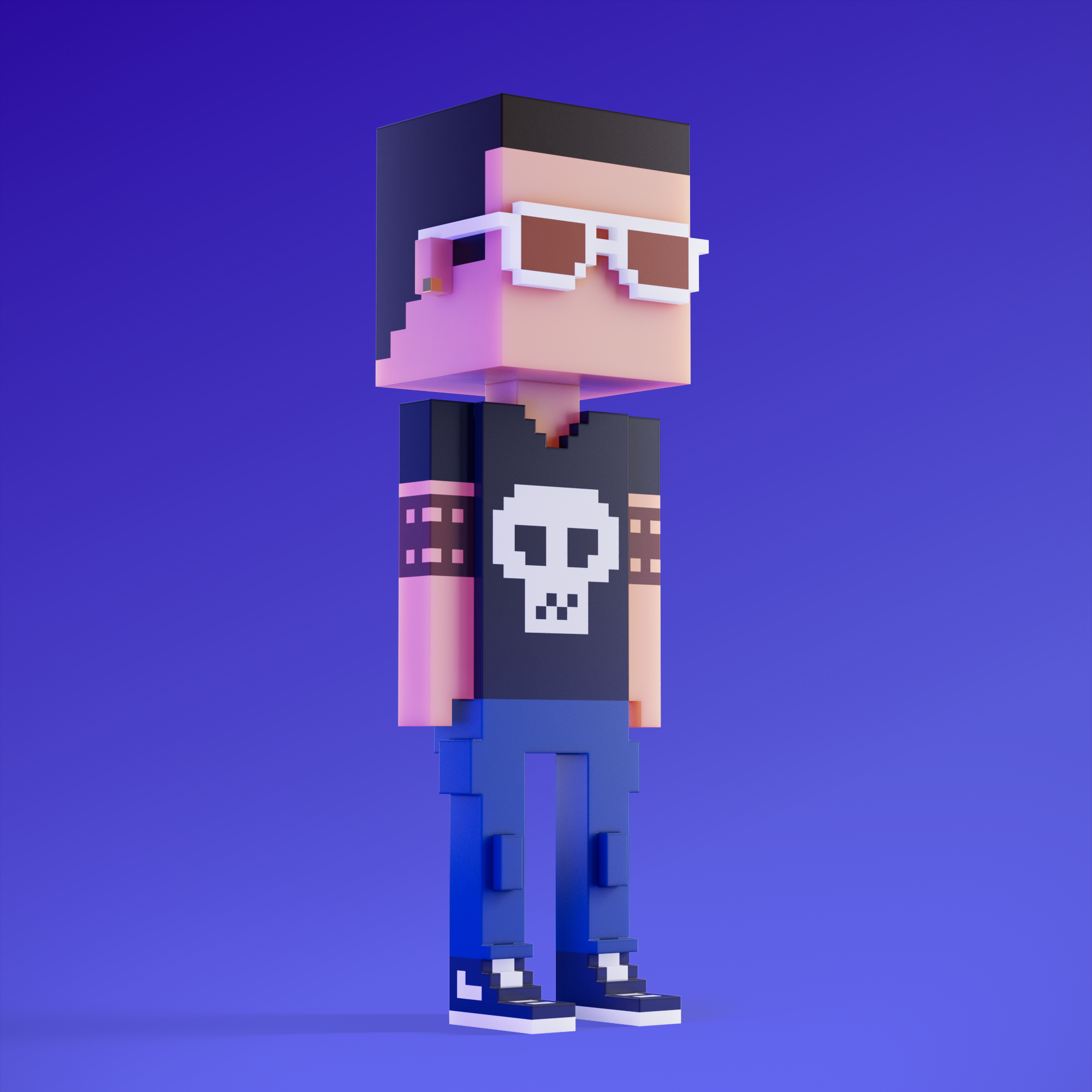 Meebits are 20,000 unique 3D voxel characters created by a custom generative algorithm.