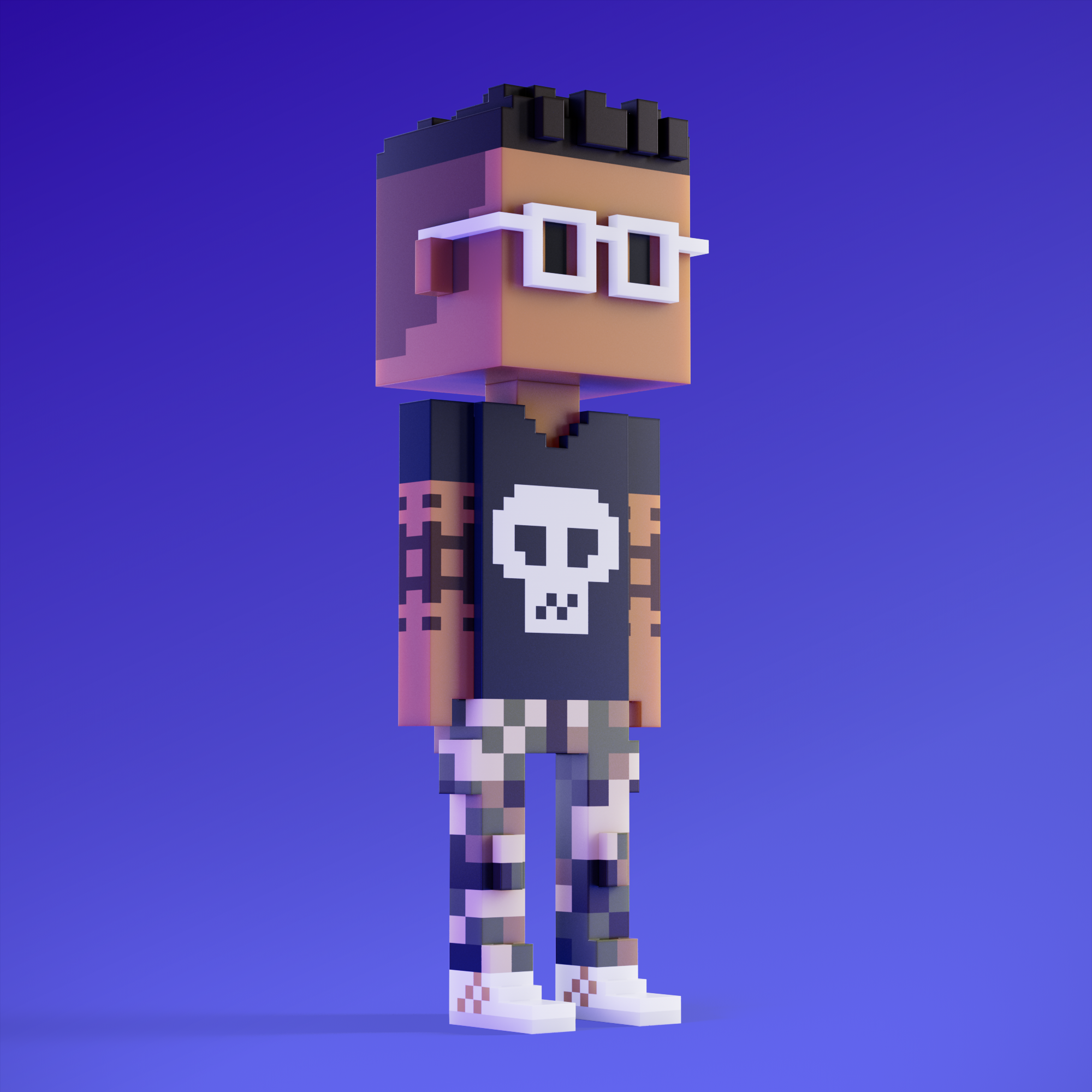 Meebits are 20,000 unique 3D voxel characters created by a custom generative algorithm.