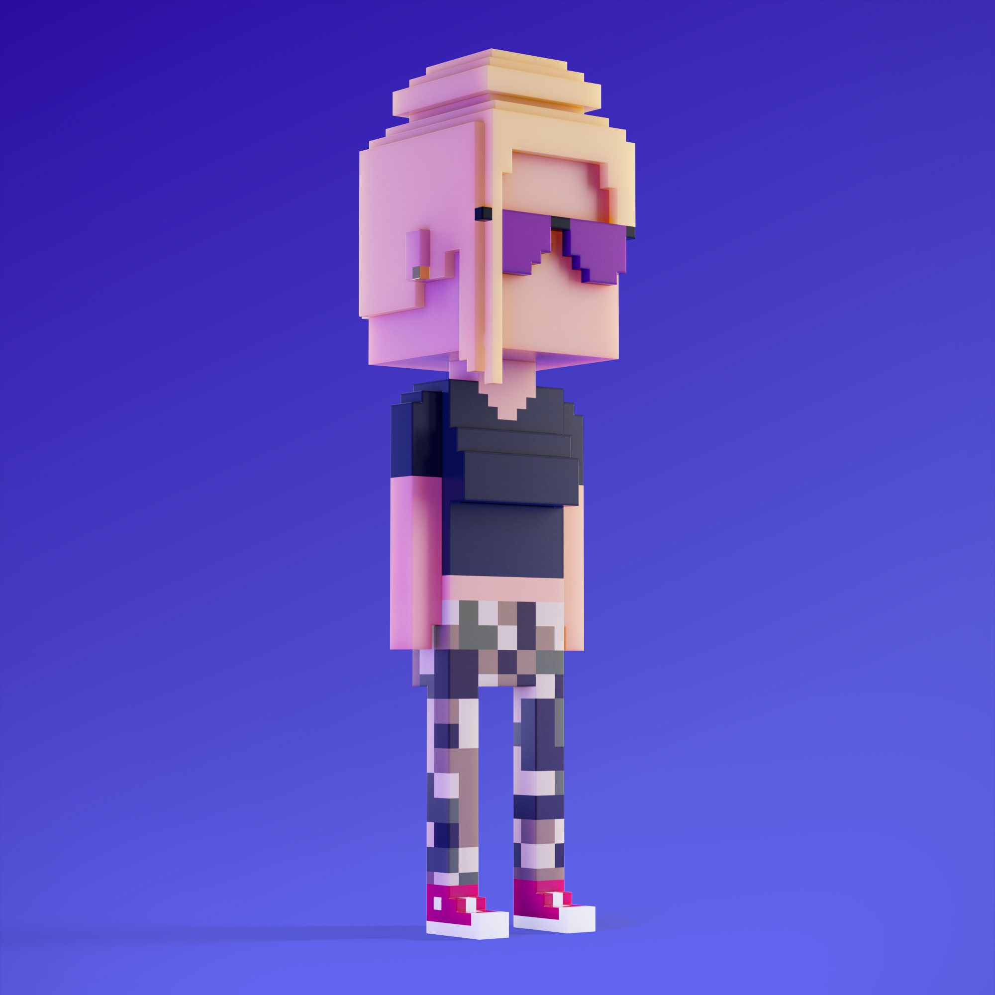 Meebits are 20,000 unique 3D voxel characters created by a custom generative algorithm.