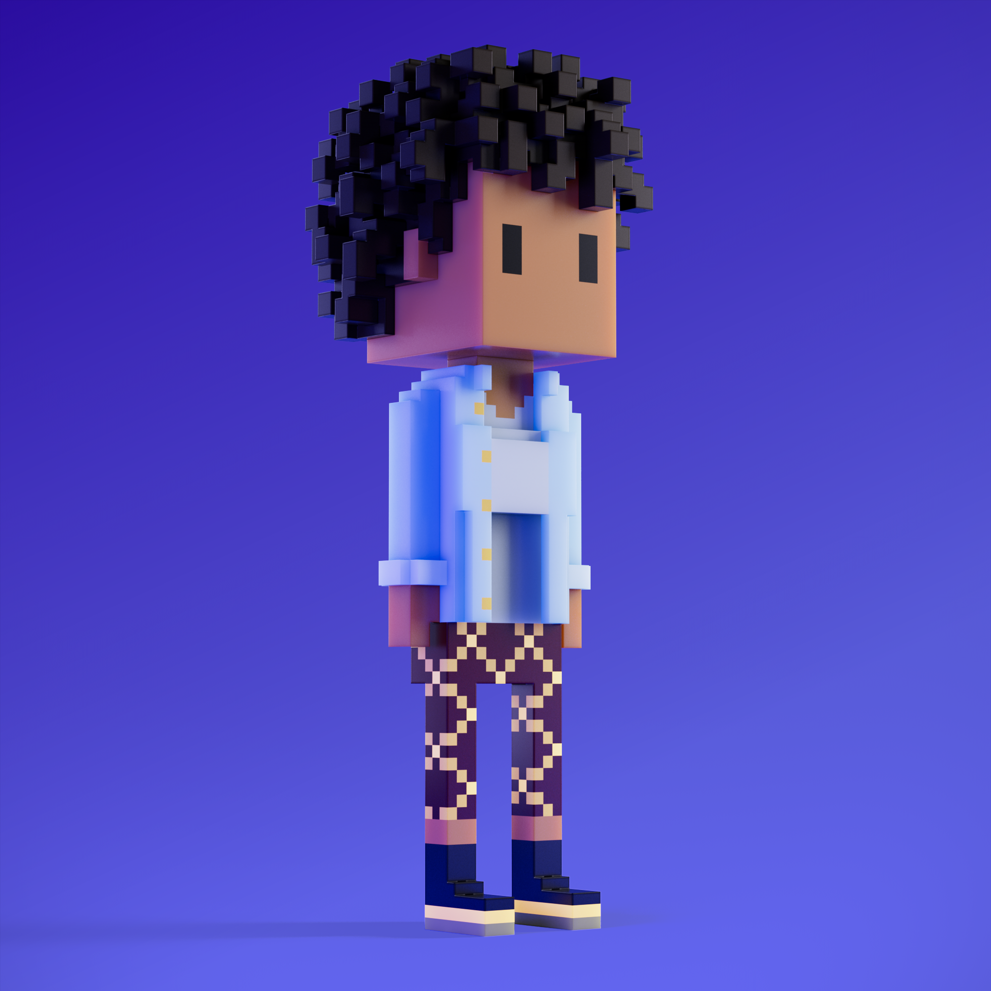 Meebits are 20,000 unique 3D voxel characters created by a custom generative algorithm.