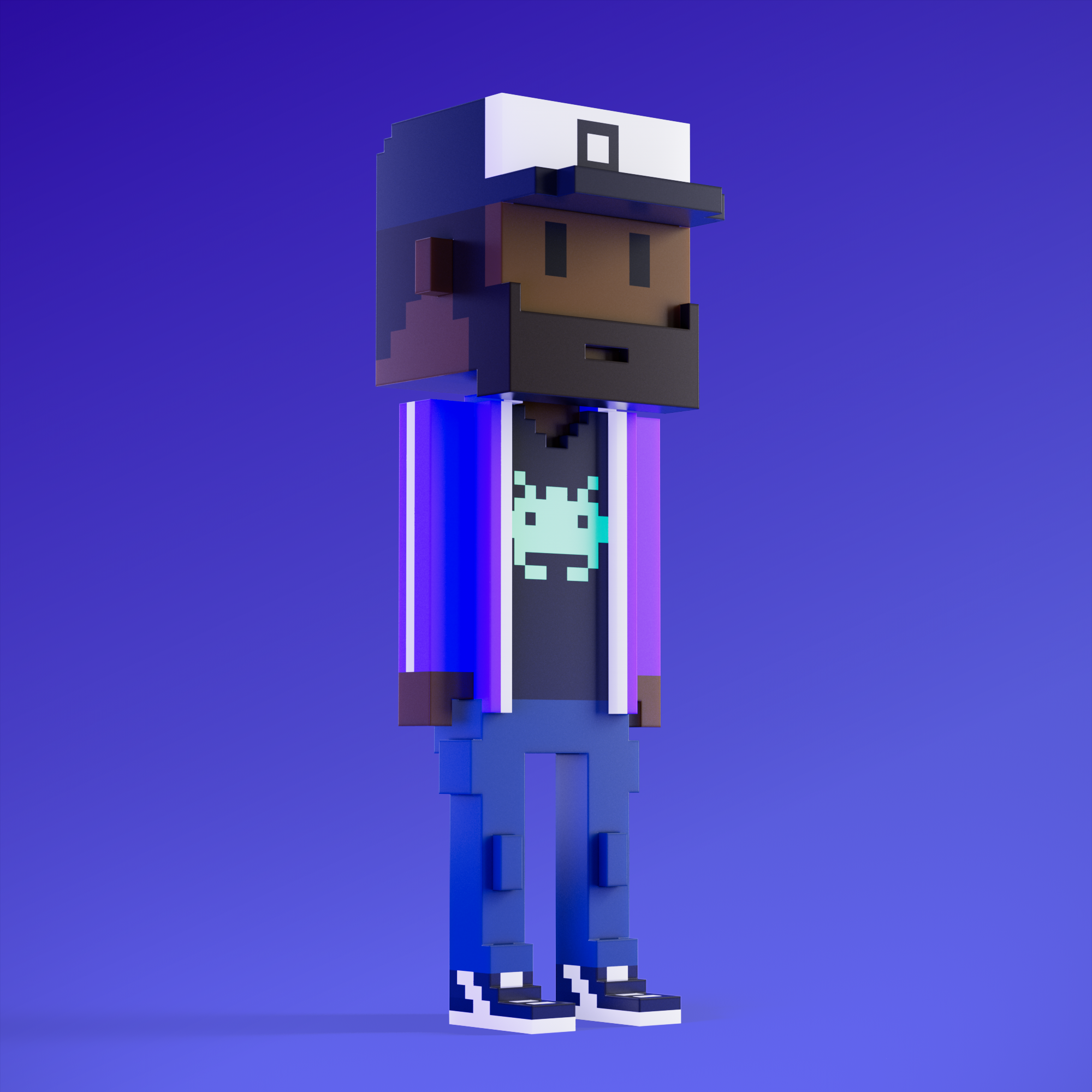 Meebits are 20,000 unique 3D voxel characters created by a custom generative algorithm.