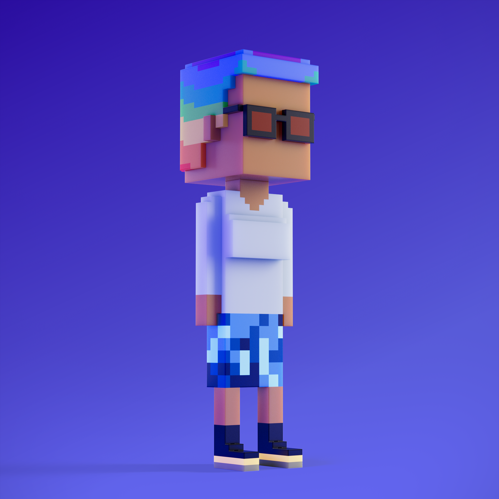 Meebits are 20,000 unique 3D voxel characters created by a custom generative algorithm.