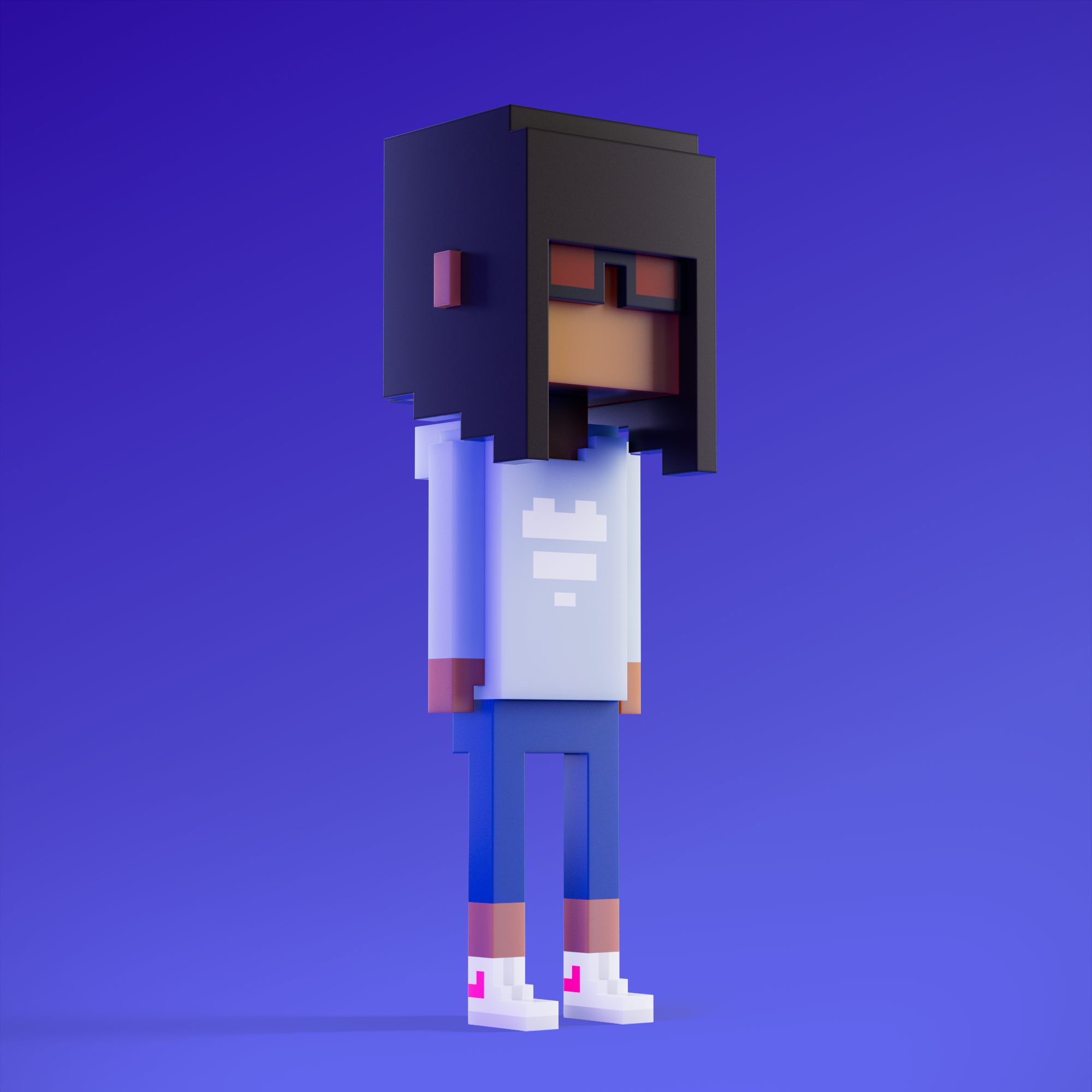 Meebits are 20,000 unique 3D voxel characters created by a custom generative algorithm.