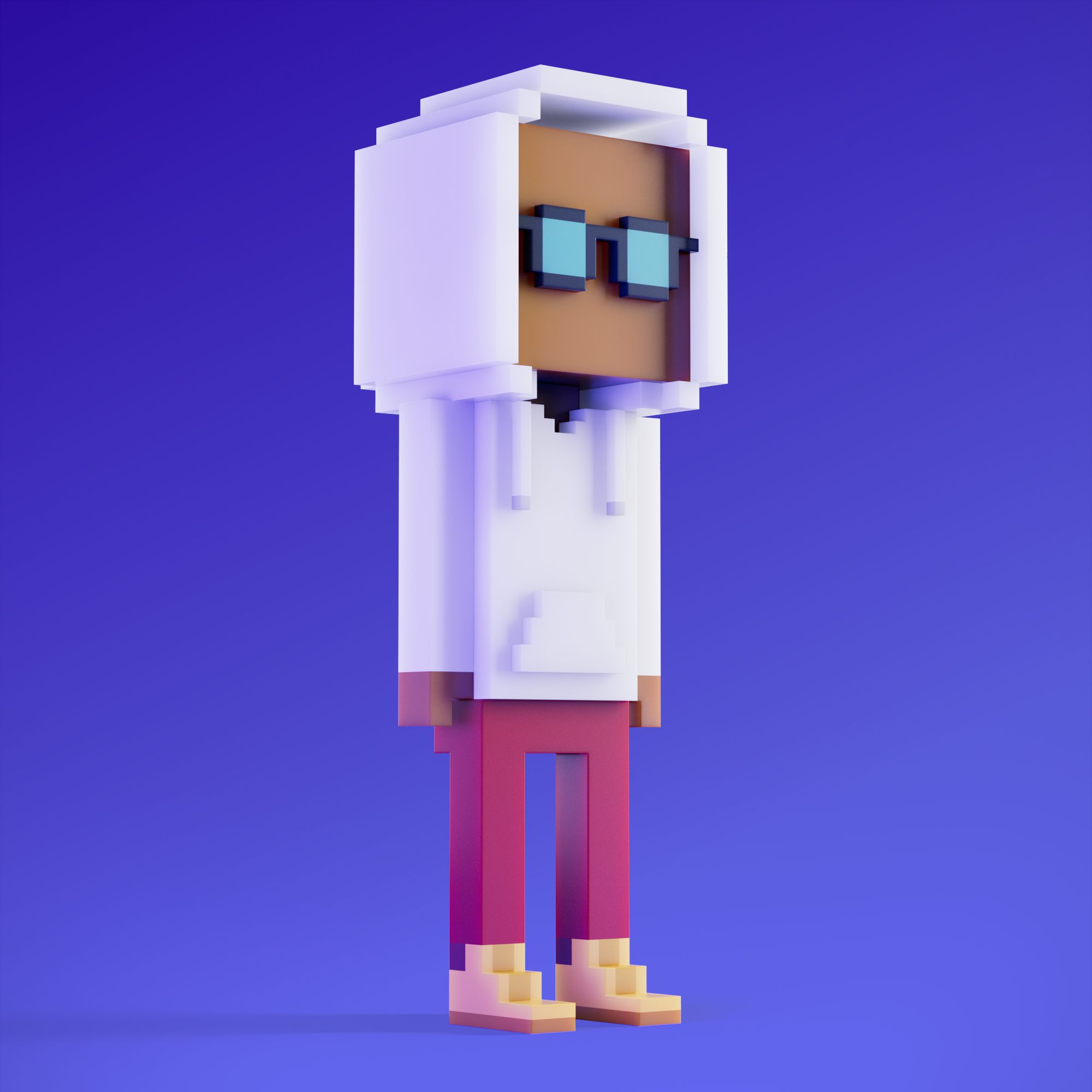 Meebits are 20,000 unique 3D voxel characters created by a custom generative algorithm.