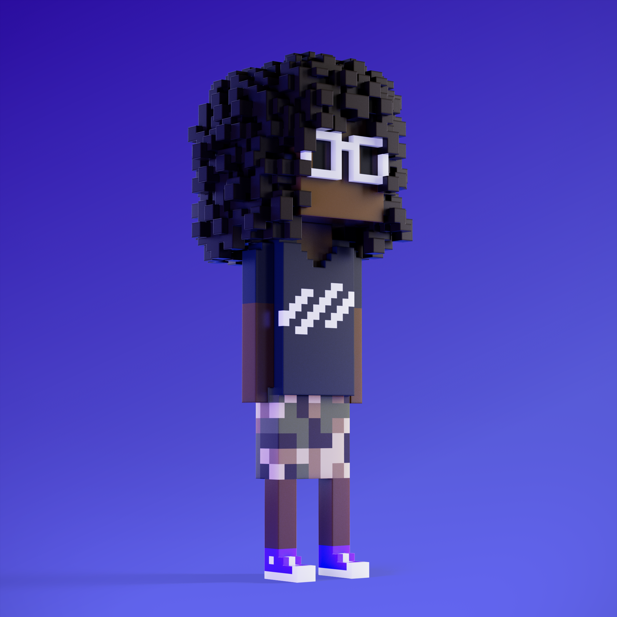 Meebits are 20,000 unique 3D voxel characters created by a custom generative algorithm.