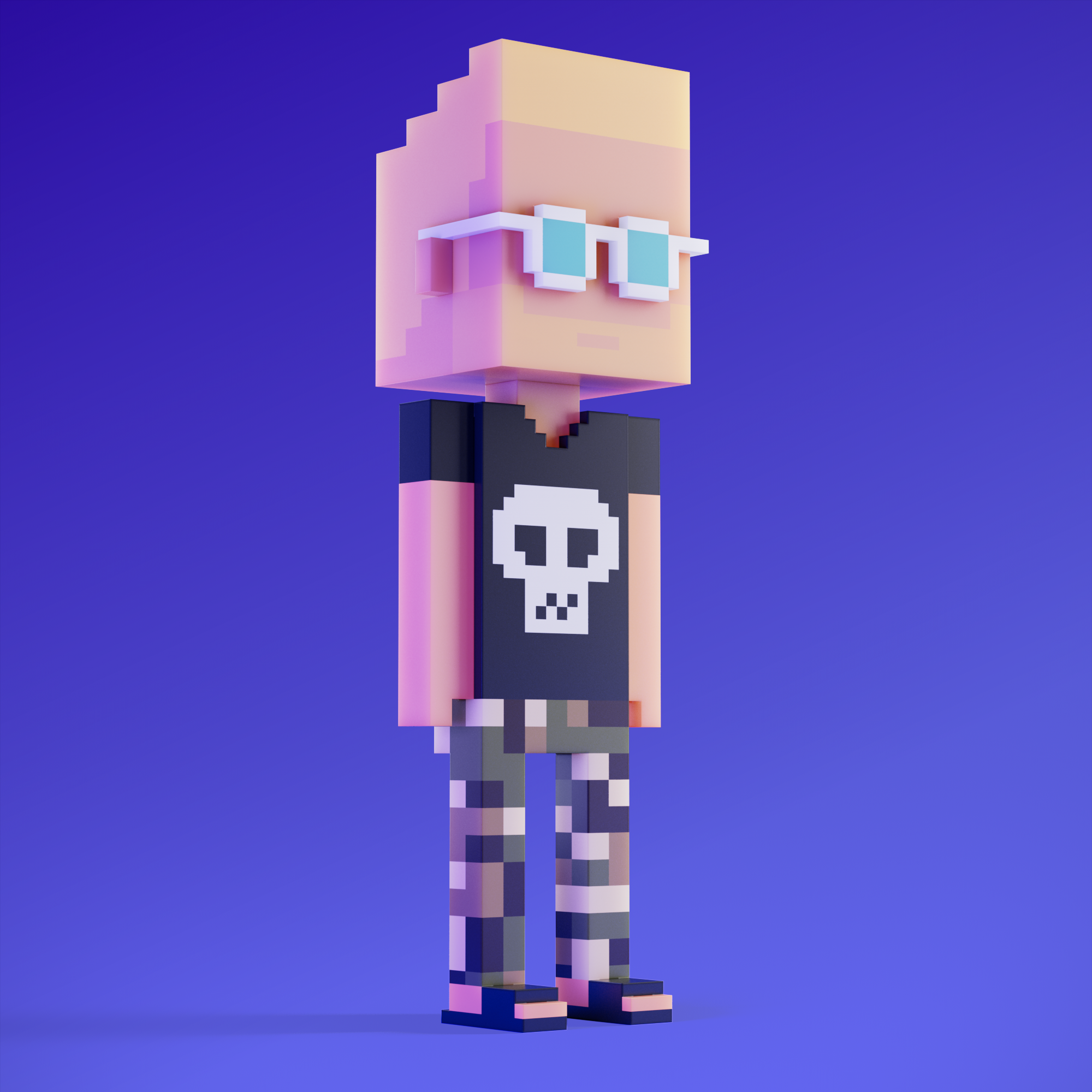 Meebits are 20,000 unique 3D voxel characters created by a custom generative algorithm.