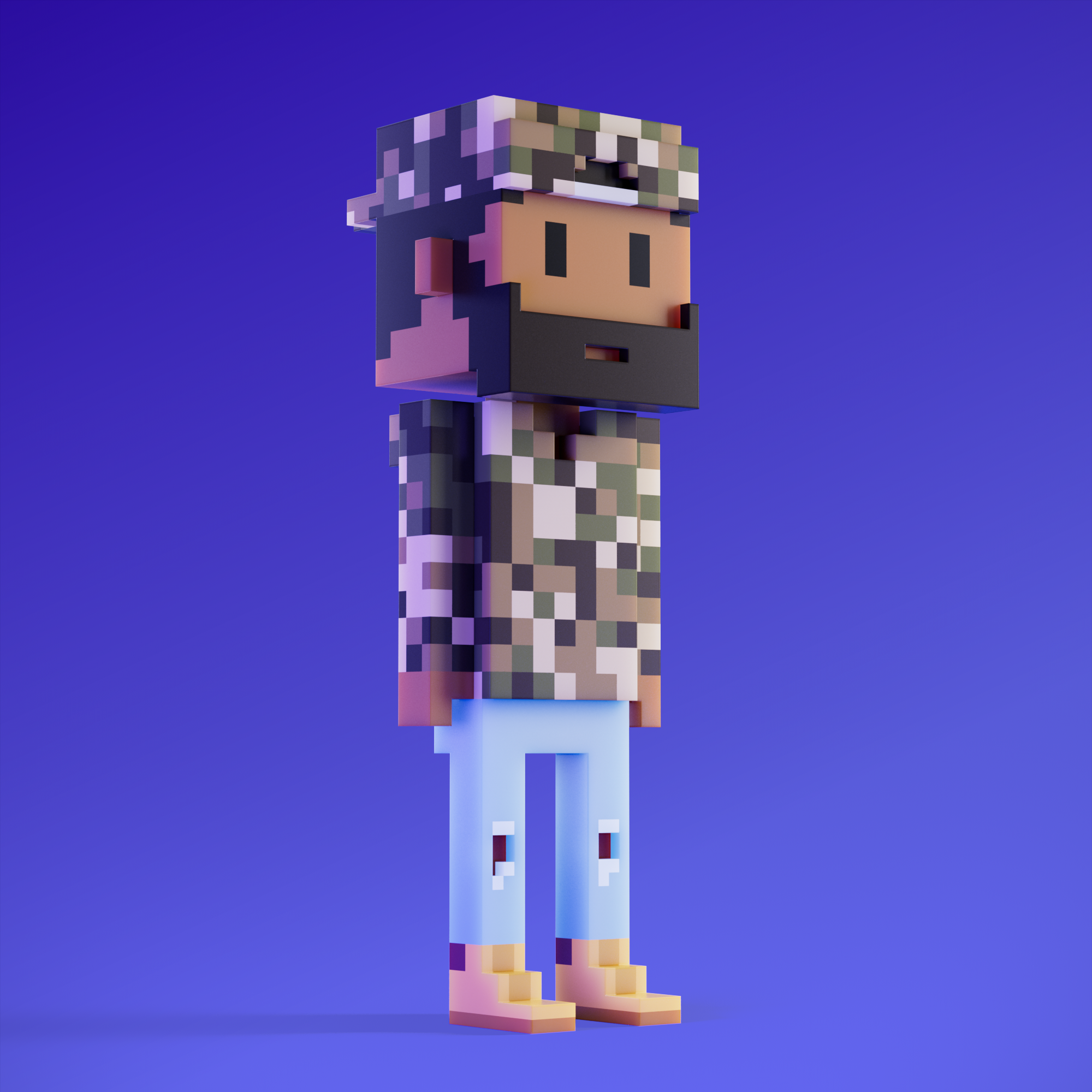 Meebits are 20,000 unique 3D voxel characters created by a custom generative algorithm.
