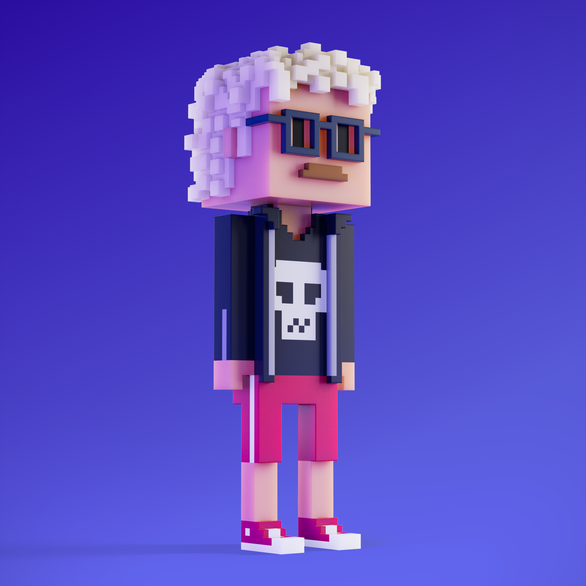Meebits are 20,000 unique 3D voxel characters created by a custom generative algorithm.